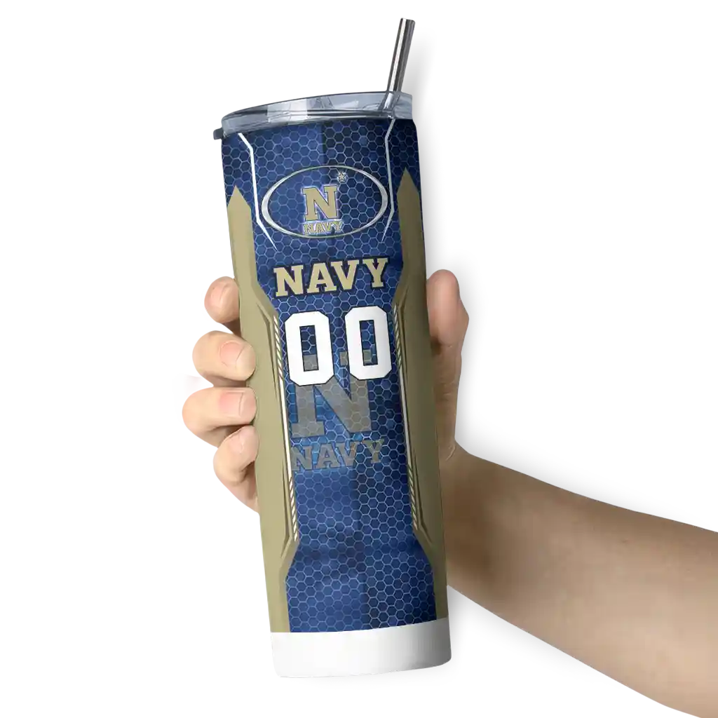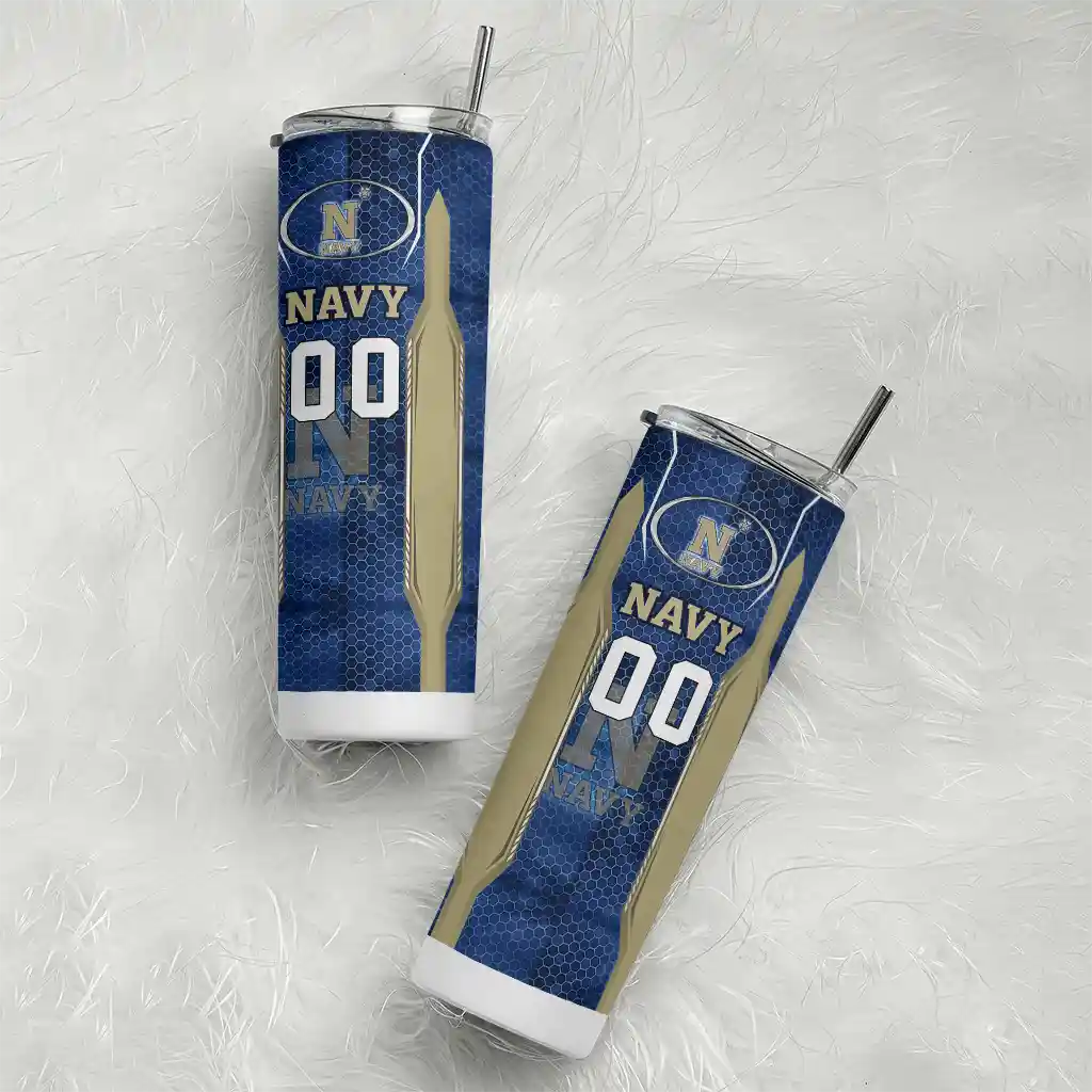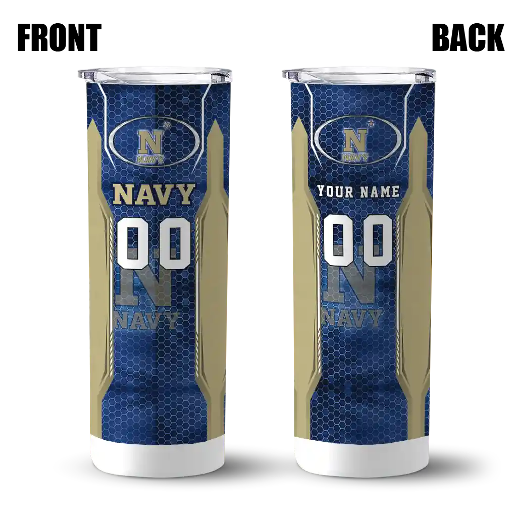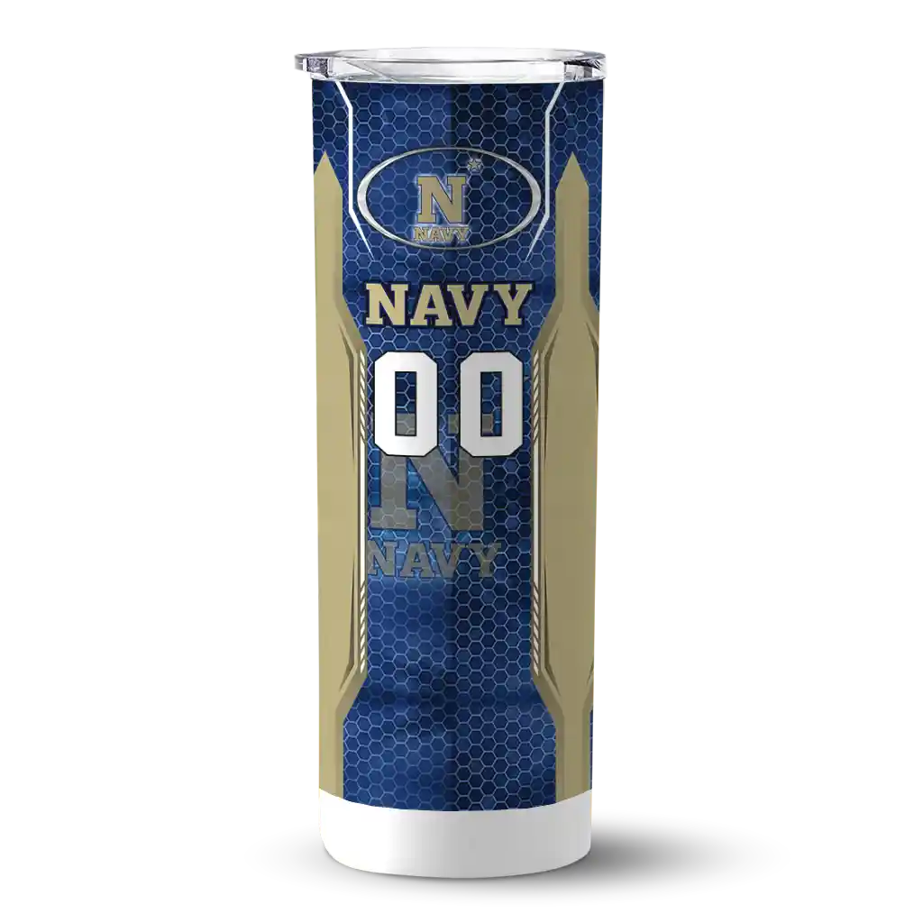 No question about it—the Custom Navy Midshipmen Hex Texture Blue Curved Tumbler is the ultimate way to stay refreshed while rocking your Navy Midshipmen pride. From the stadium to your tailgate, or just chilling at home, this sleek tumbler makes sure you stay hydrated in style. What’s in the box? A stainless steel tumbler, clear lid, and removable straw—all the essentials for keeping your favorite drinks on point!