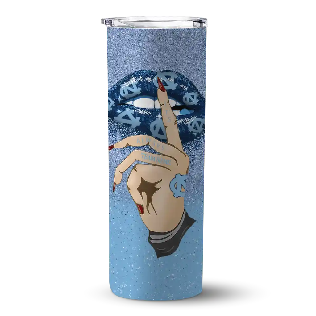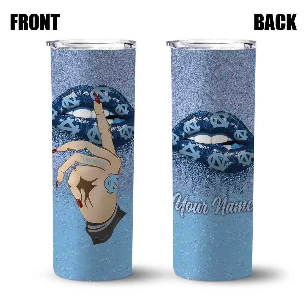 Personalized North Carolina Tar Heels Sparkle Lips Light Blue Skinny Tumbler