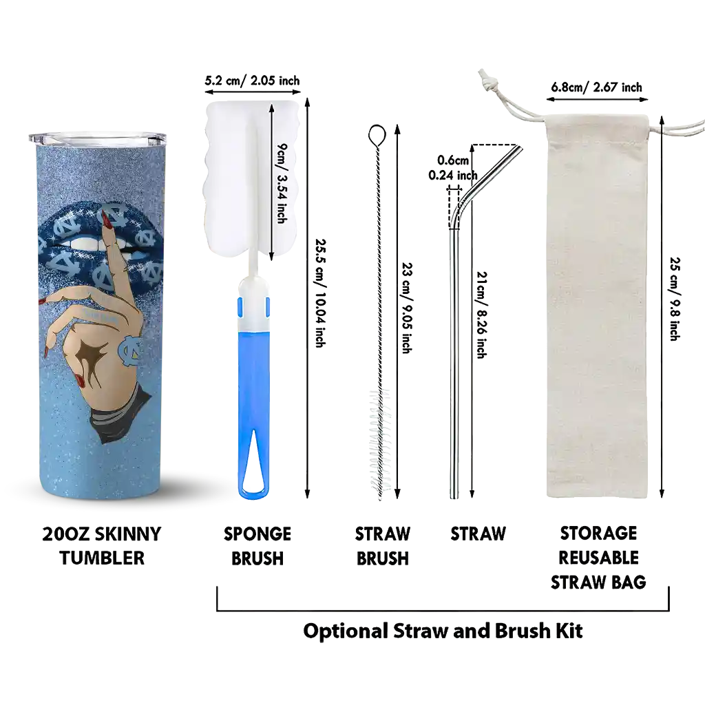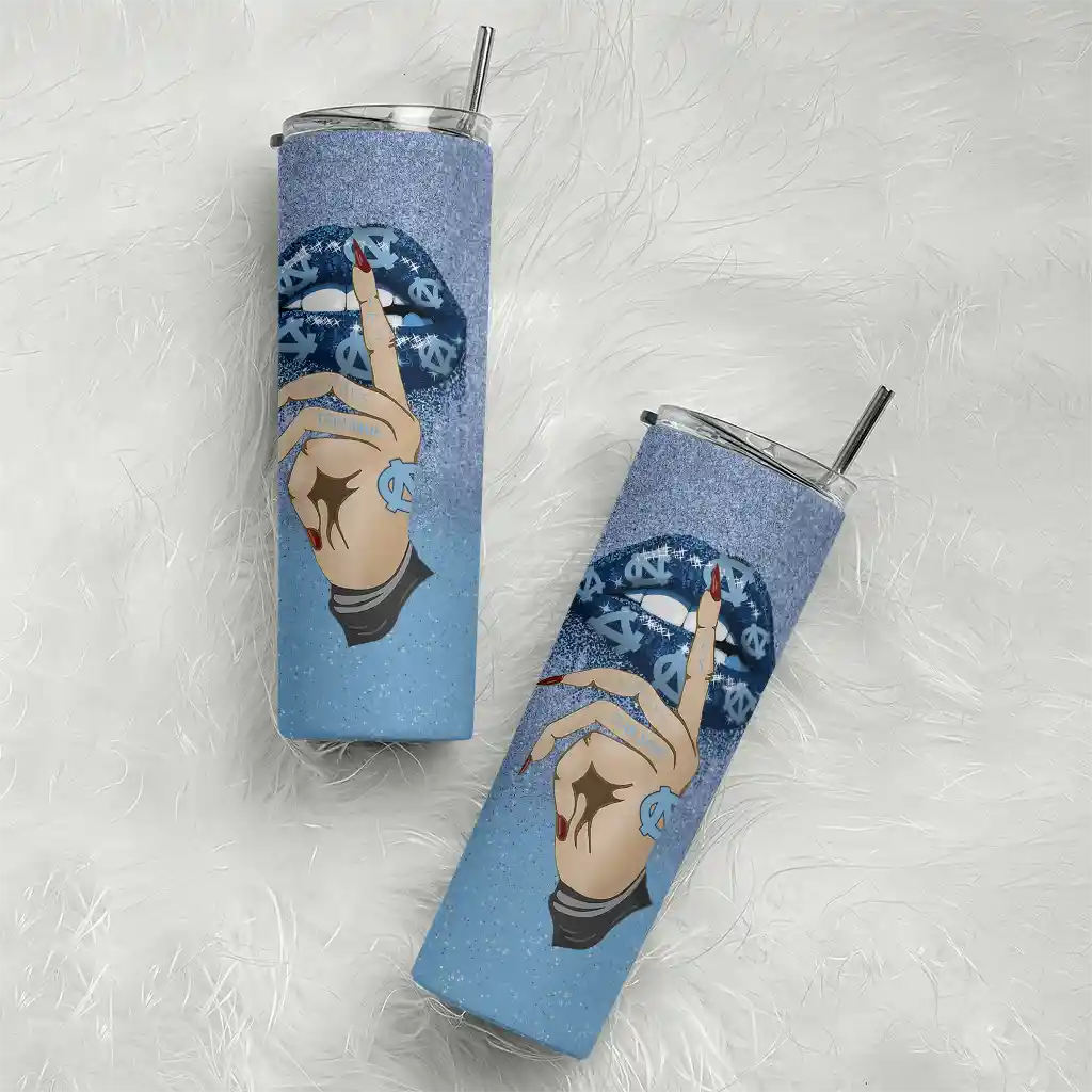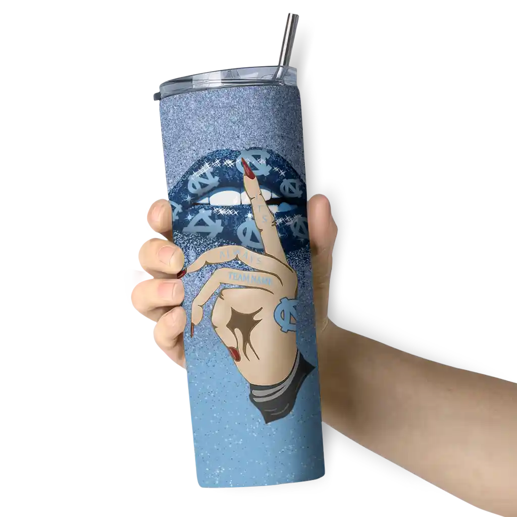 The Personalized North Carolina Tar Heels Sparkle Lips Light Blue Skinny Tumbler tumbler is the perfect way to stay refreshed while showing off your pride for North Carolina Tar Heels. With its double-wall insulation, your drinks stay at the right temperature for hours, whether you're enjoying a hot coffee or keeping your iced drink cold. What's inside? You’ll find 1 stainless steel tumbler, 1 clear lid, and 1 removable straw. It's the perfect blend of function and fan spirit! Ergonomically designed for comfort, made from durable stainless steel, and insulated to maintain your drink’s temperature, this tumbler is a must-have for any dedicated NCAA fan.
