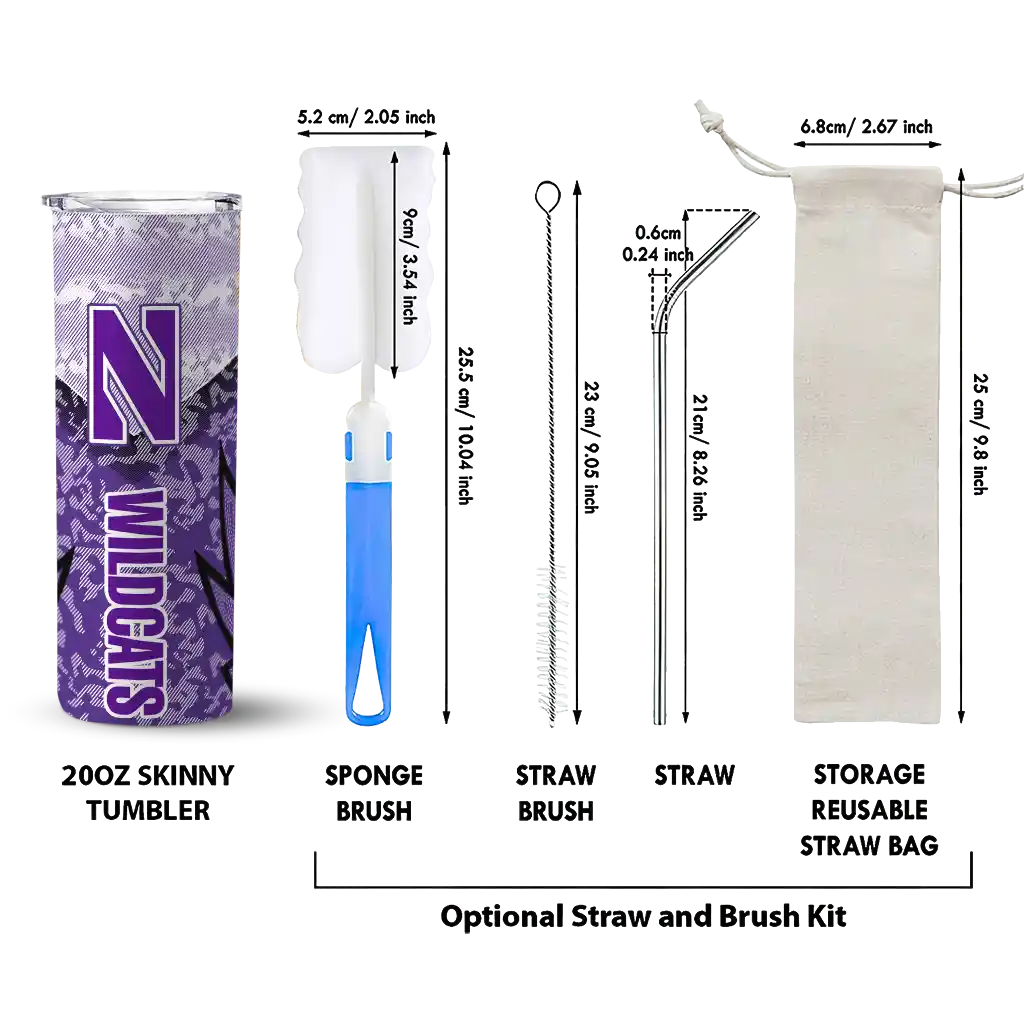The Custom Northwestern Wildcats Star Cluster Purple Skinny Tumbler tumbler is the perfect way to stay refreshed while showing off your pride for Northwestern Wildcats. With its double-wall insulation, your drinks stay at the right temperature for hours, whether you're enjoying a hot coffee or keeping your iced drink cold. What's inside? You’ll find 1 stainless steel tumbler, 1 clear lid, and 1 removable straw. It's the perfect blend of function and fan spirit! Ergonomically designed for comfort, made from durable stainless steel, and insulated to maintain your drink’s temperature, this tumbler is a must-have for any dedicated NCAA fan.
