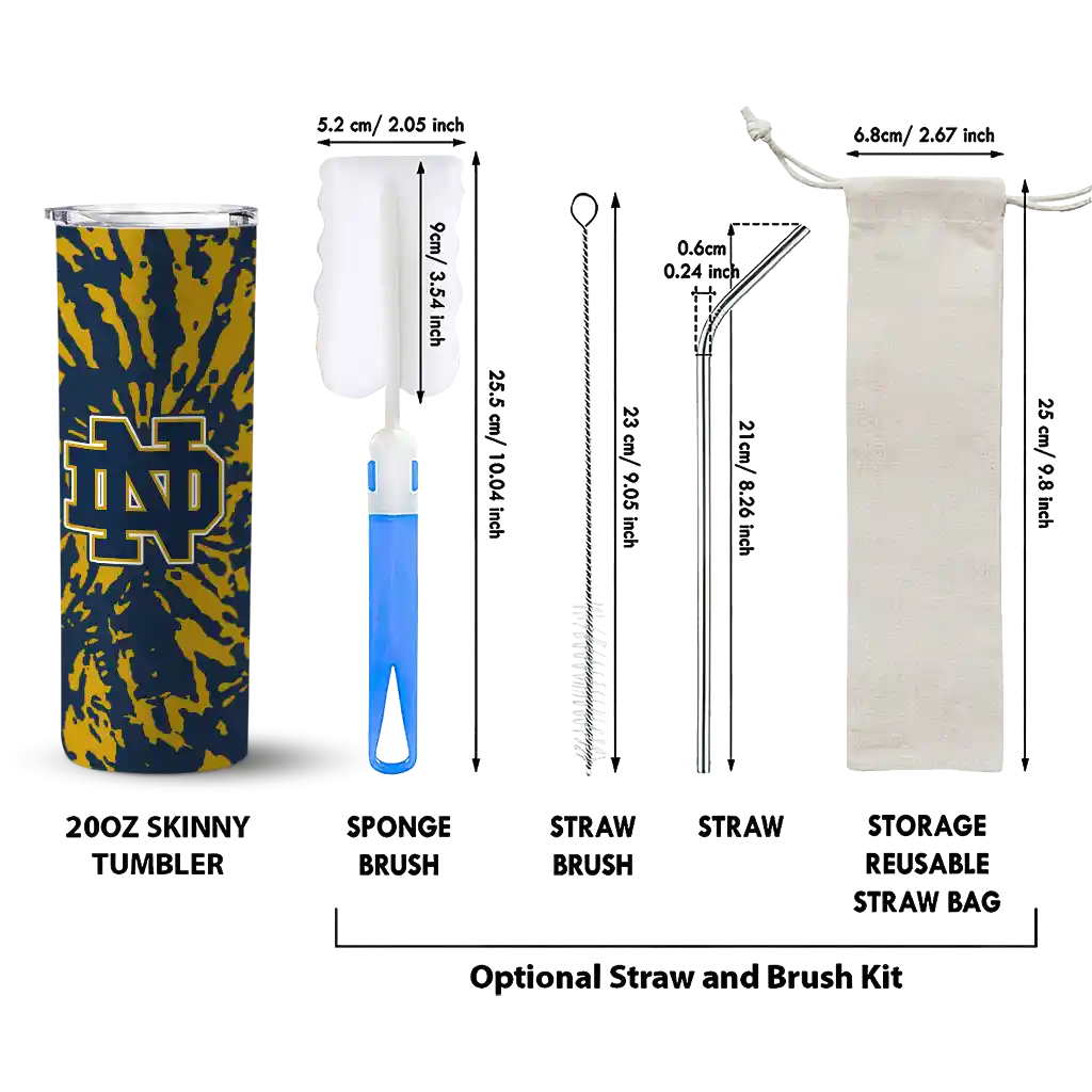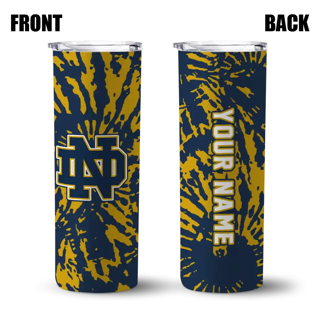 The Personalized Notre Dame Fighting Irish Metallic Grid Navy Skinny Tumbler tumbler is the perfect way to stay refreshed while showing off your pride for Notre Dame Fighting Irish. With its double-wall insulation, your drinks stay at the right temperature for hours, whether you're enjoying a hot coffee or keeping your iced drink cold. What's inside? You’ll find 1 stainless steel tumbler, 1 clear lid, and 1 removable straw. It's the perfect blend of function and fan spirit! Ergonomically designed for comfort, made from durable stainless steel, and insulated to maintain your drink’s temperature, this tumbler is a must-have for any dedicated NCAA fan.