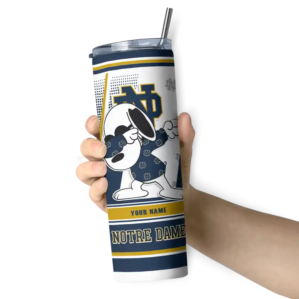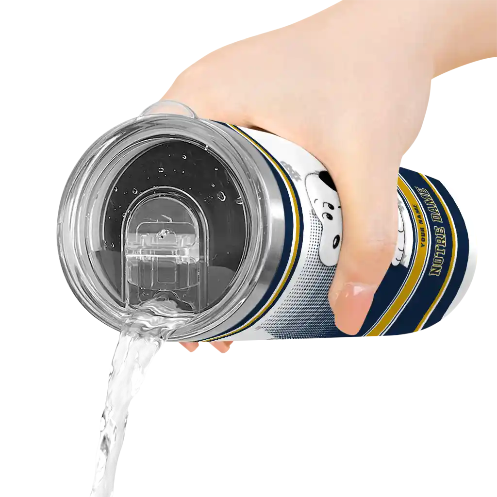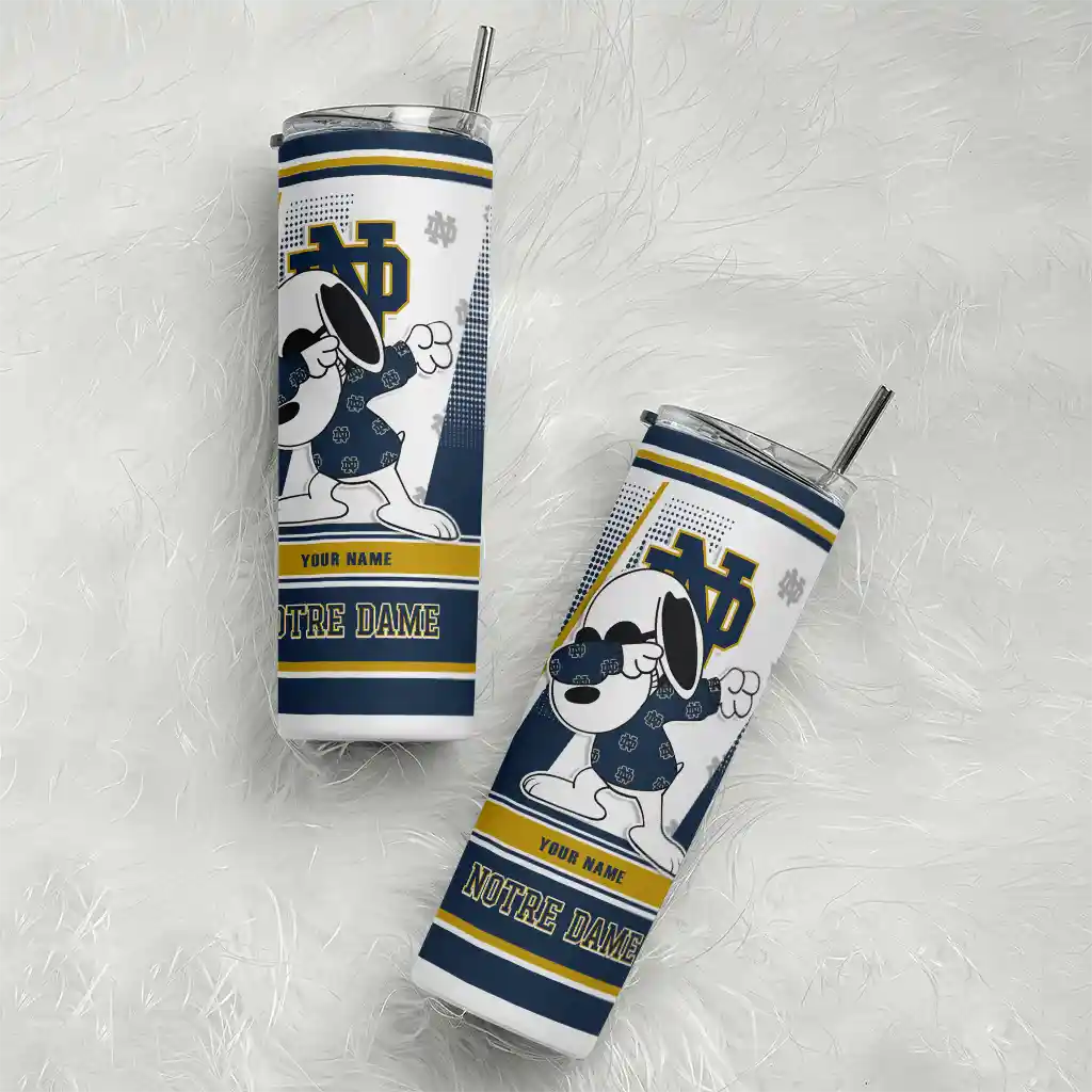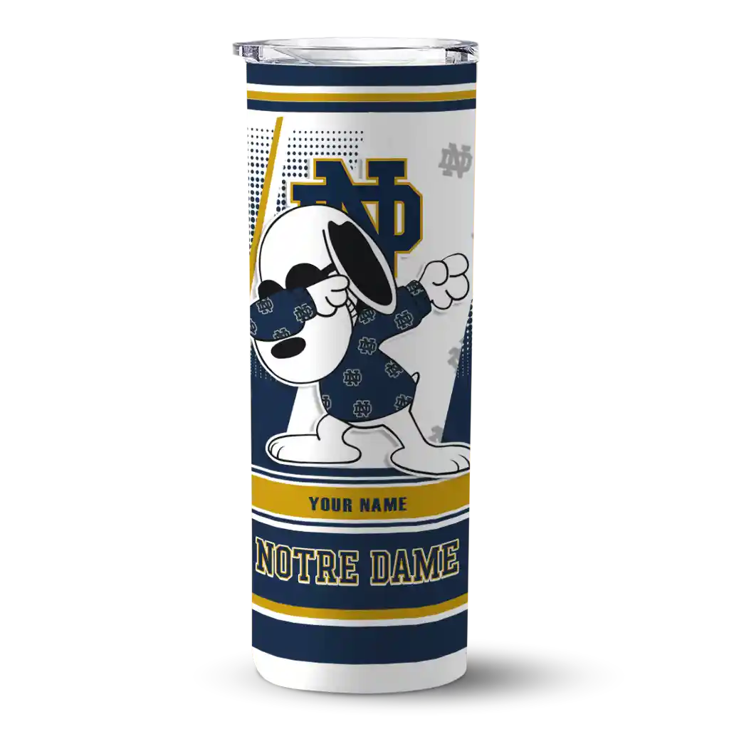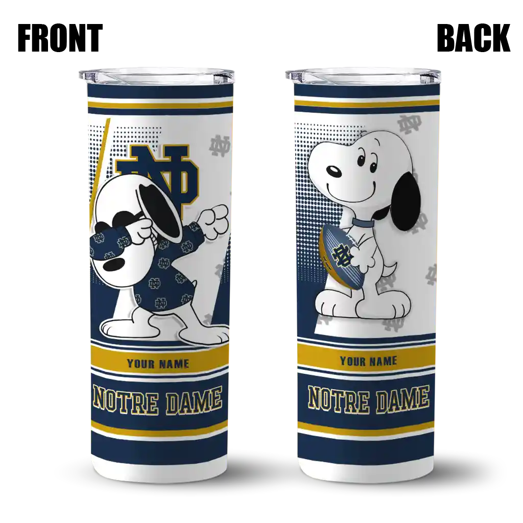 Personalized Notre Dame Fighting Irish Snoopy Dog Navy White Skinny Tumbler