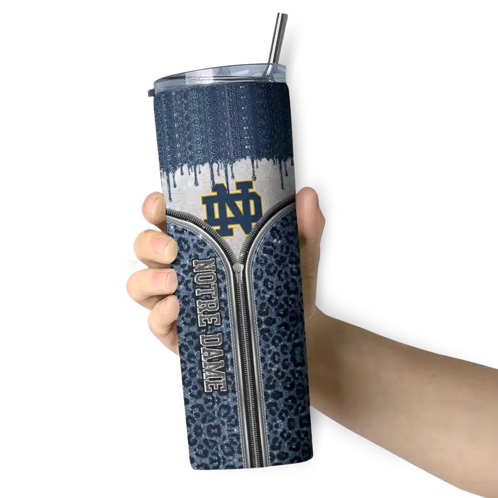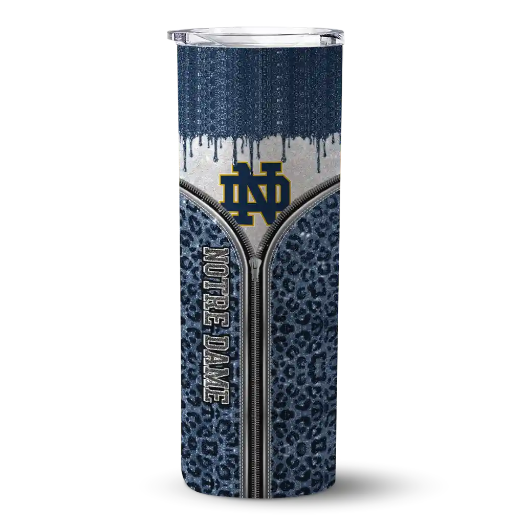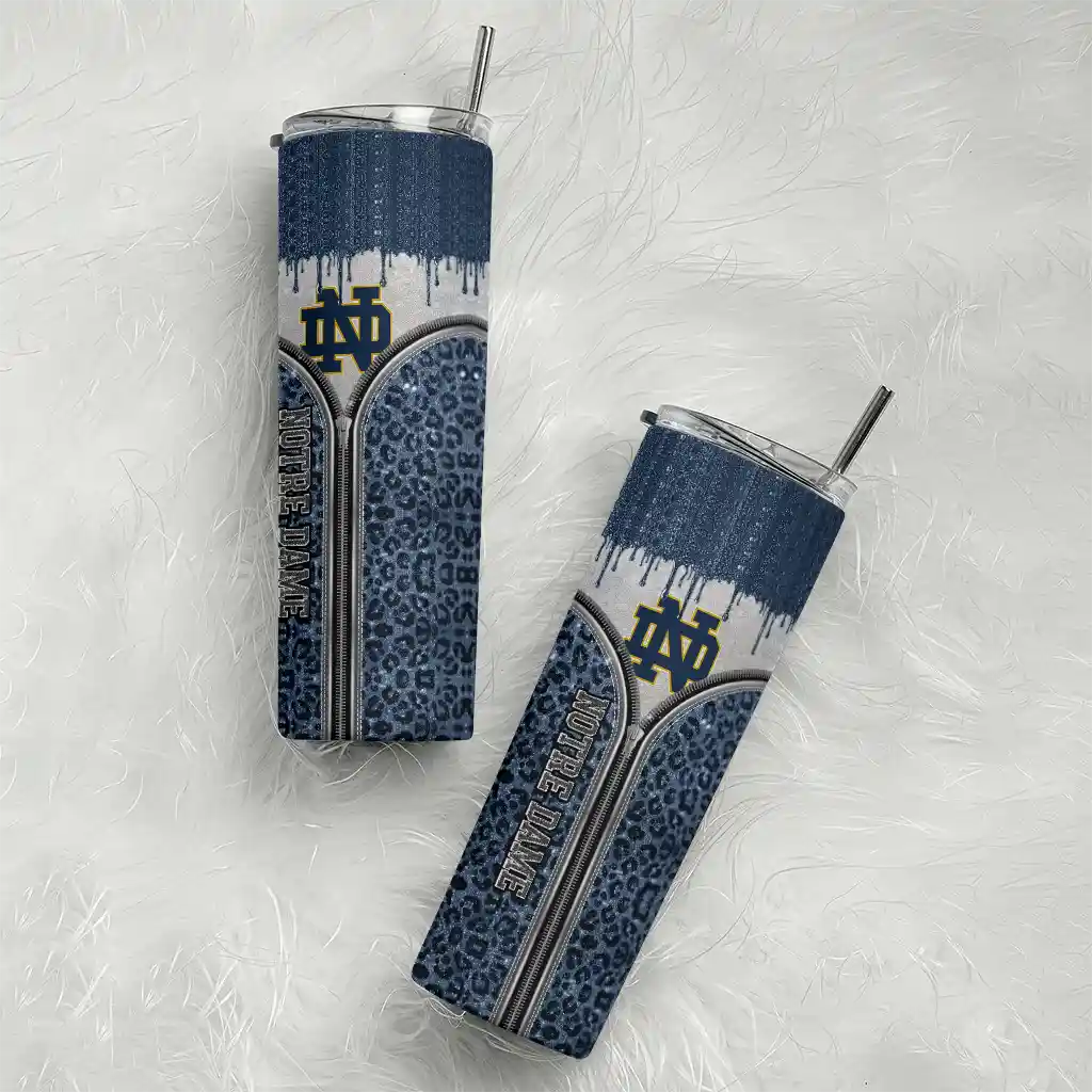 The Personalized Notre Dame Fighting Irish Sparkle Drip Navy Skinny Tumbler tumbler is the perfect way to stay refreshed while showing off your pride for Notre Dame Fighting Irish. With its double-wall insulation, your drinks stay at the right temperature for hours, whether you're enjoying a hot coffee or keeping your iced drink cold. What's inside? You’ll find 1 stainless steel tumbler, 1 clear lid, and 1 removable straw. It's the perfect blend of function and fan spirit! Ergonomically designed for comfort, made from durable stainless steel, and insulated to maintain your drink’s temperature, this tumbler is a must-have for any dedicated NCAA fan.