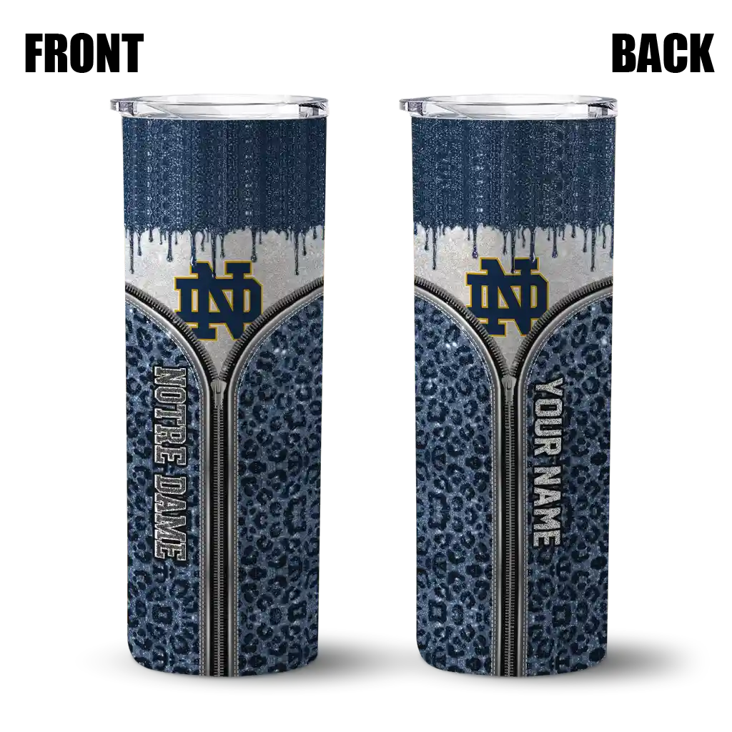 Personalized Notre Dame Fighting Irish Sparkle Drip Navy Skinny Tumbler