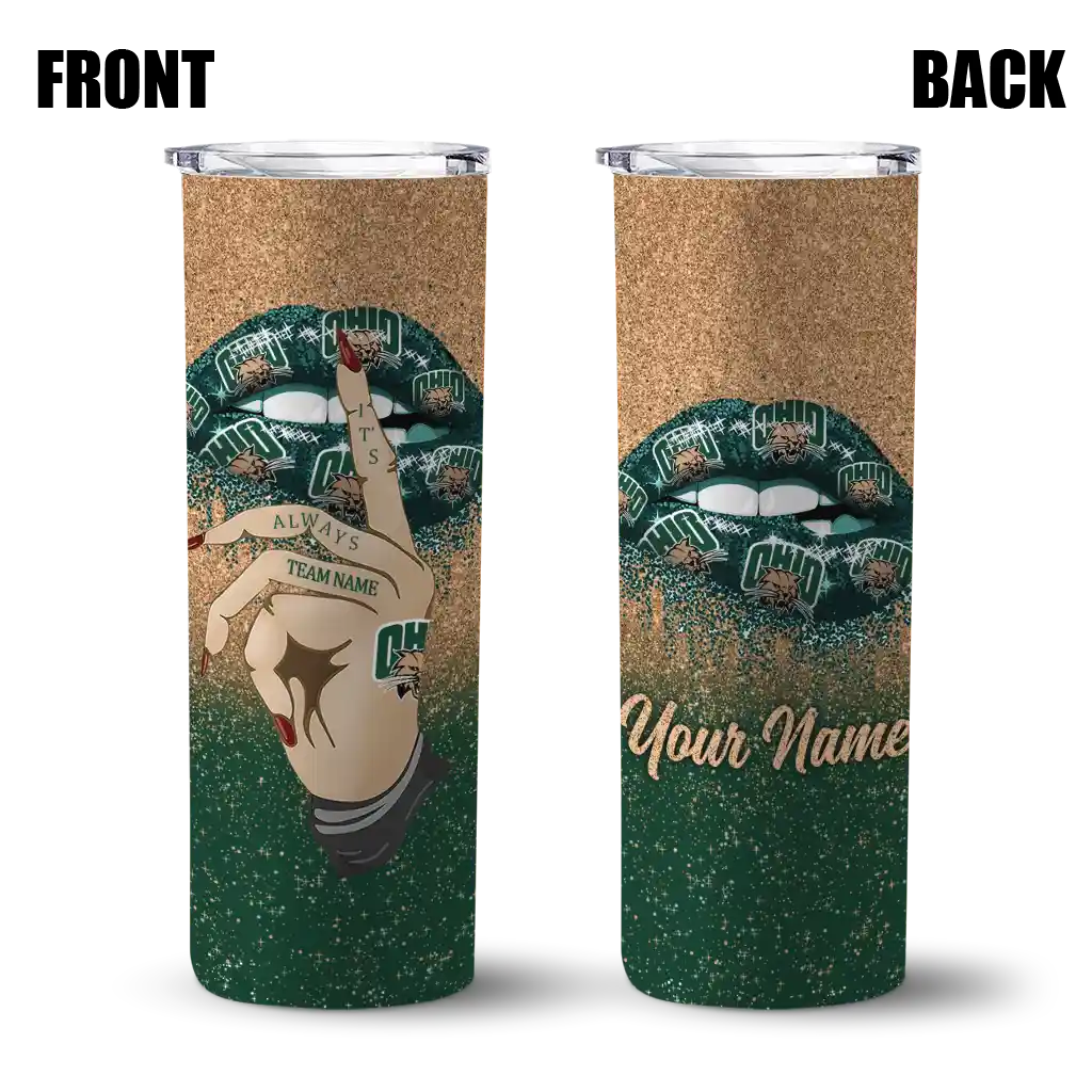 Personalized Ohio Bobcats Sparkle Lips Green Skinny Tumbler
