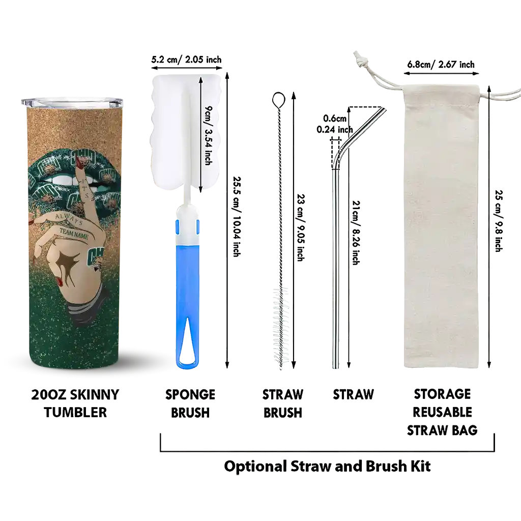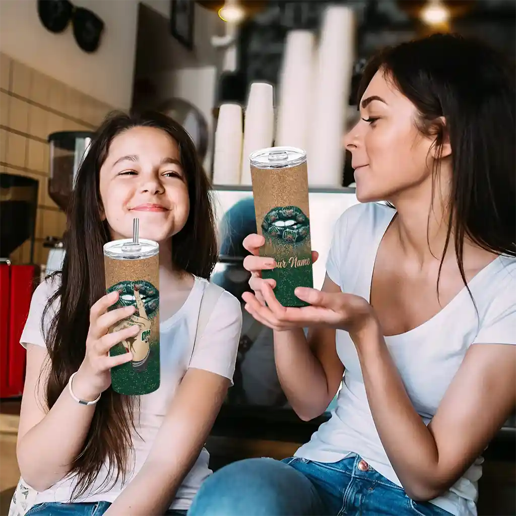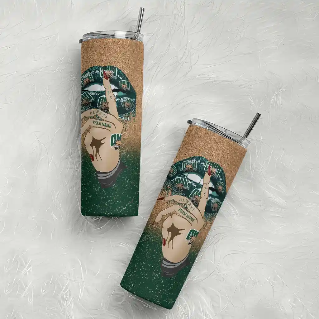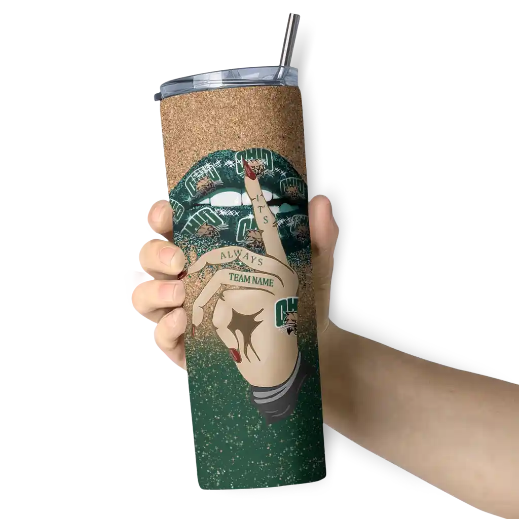 The Personalized Ohio Bobcats Sparkle Lips Green Skinny Tumbler tumbler is the perfect way to stay refreshed while showing off your pride for Ohio Bobcats. With its double-wall insulation, your drinks stay at the right temperature for hours, whether you're enjoying a hot coffee or keeping your iced drink cold. What's inside? You’ll find 1 stainless steel tumbler, 1 clear lid, and 1 removable straw. It's the perfect blend of function and fan spirit! Ergonomically designed for comfort, made from durable stainless steel, and insulated to maintain your drink’s temperature, this tumbler is a must-have for any dedicated NCAA fan.