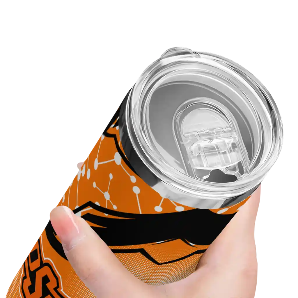 The Custom Oklahoma State Cowboys Helmet Belt Orange Black Skinny Tumbler tumbler is the perfect way to stay refreshed while showing off your pride for Oklahoma State Cowboys. With its double-wall insulation, your drinks stay at the right temperature for hours, whether you're enjoying a hot coffee or keeping your iced drink cold. What's inside? You’ll find 1 stainless steel tumbler, 1 clear lid, and 1 removable straw. It's the perfect blend of function and fan spirit! Ergonomically designed for comfort, made from durable stainless steel, and insulated to maintain your drink’s temperature, this tumbler is a must-have for any dedicated NCAA fan.