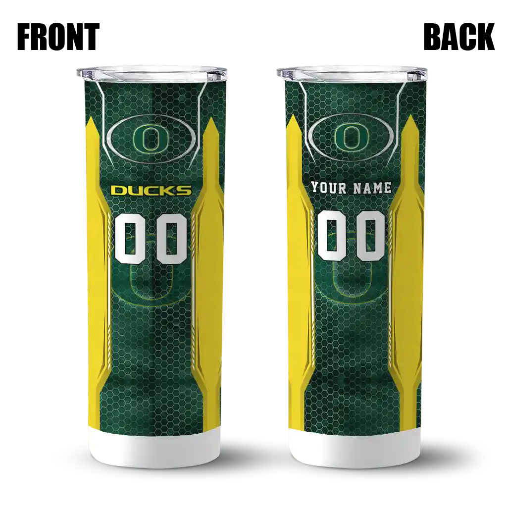 No question about it—the Personalized Oregon Ducks Heart Helmet Motif Green Curved Tumbler is the ultimate way to stay refreshed while rocking your Oregon Ducks pride. From the stadium to your tailgate, or just chilling at home, this sleek tumbler makes sure you stay hydrated in style. What’s in the box? A stainless steel tumbler, clear lid, and removable straw—all the essentials for keeping your favorite drinks on point!