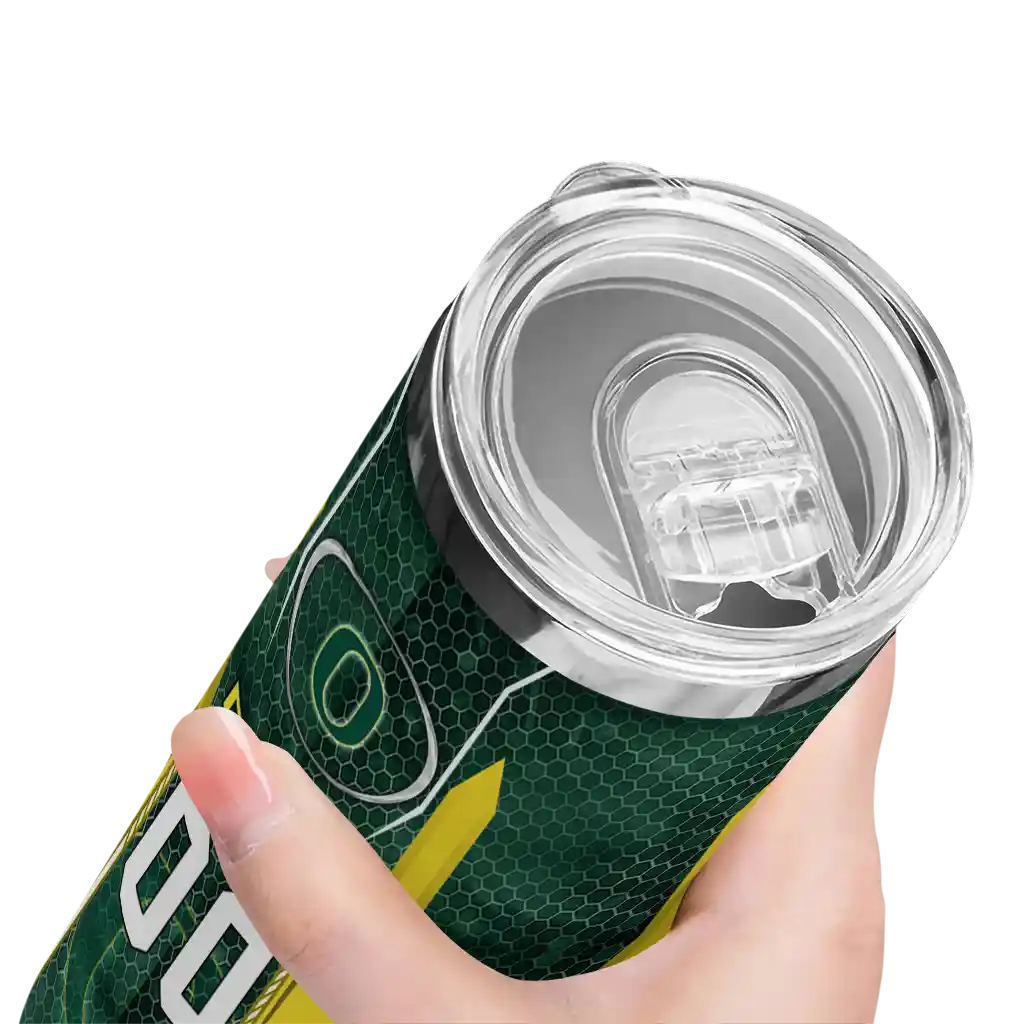 The Personalized Oregon Ducks Stacked Diamond Green Skinny Tumbler tumbler is the perfect way to stay refreshed while showing off your pride for Oregon Ducks. With its double-wall insulation, your drinks stay at the right temperature for hours, whether you're enjoying a hot coffee or keeping your iced drink cold. What's inside? You’ll find 1 stainless steel tumbler, 1 clear lid, and 1 removable straw. It's the perfect blend of function and fan spirit! Ergonomically designed for comfort, made from durable stainless steel, and insulated to maintain your drink’s temperature, this tumbler is a must-have for any dedicated NCAA fan.