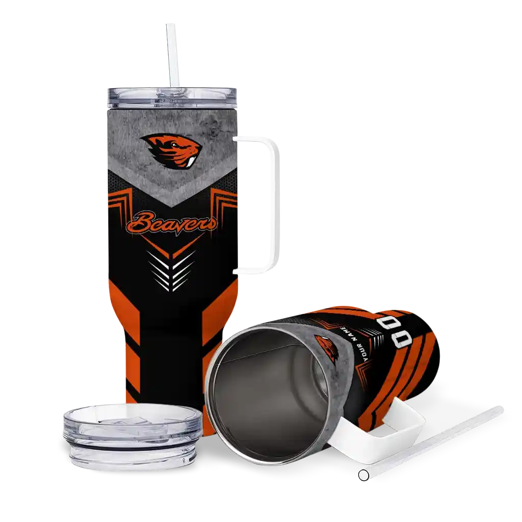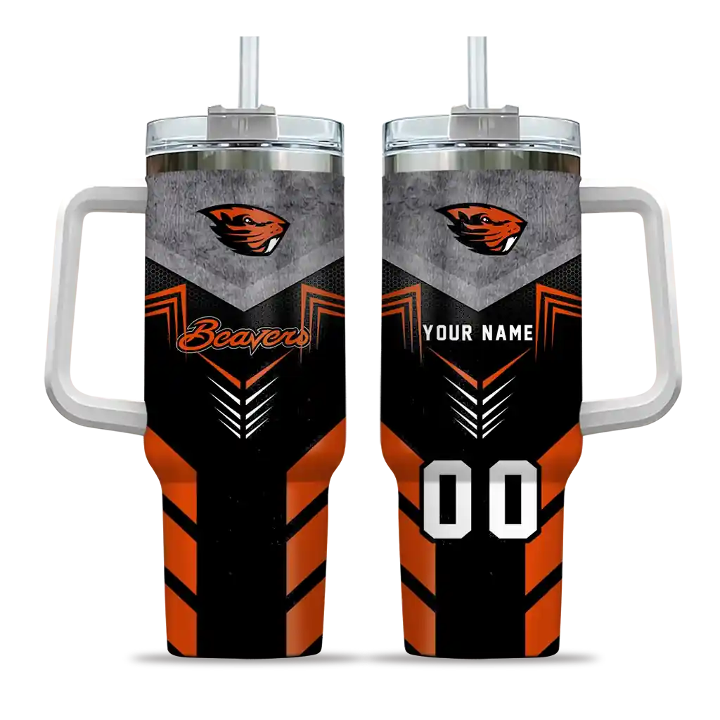 No question about it—the Personalized Oregon State Beavers Arrow Armor Orange Black Curved Tumbler is the ultimate way to stay refreshed while rocking your Oregon State Beavers pride. From the stadium to your tailgate, or just chilling at home, this sleek tumbler makes sure you stay hydrated in style. What’s in the box? A stainless steel tumbler, clear lid, and removable straw—all the essentials for keeping your favorite drinks on point!