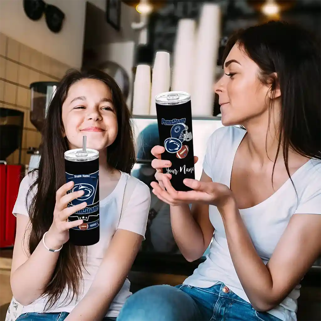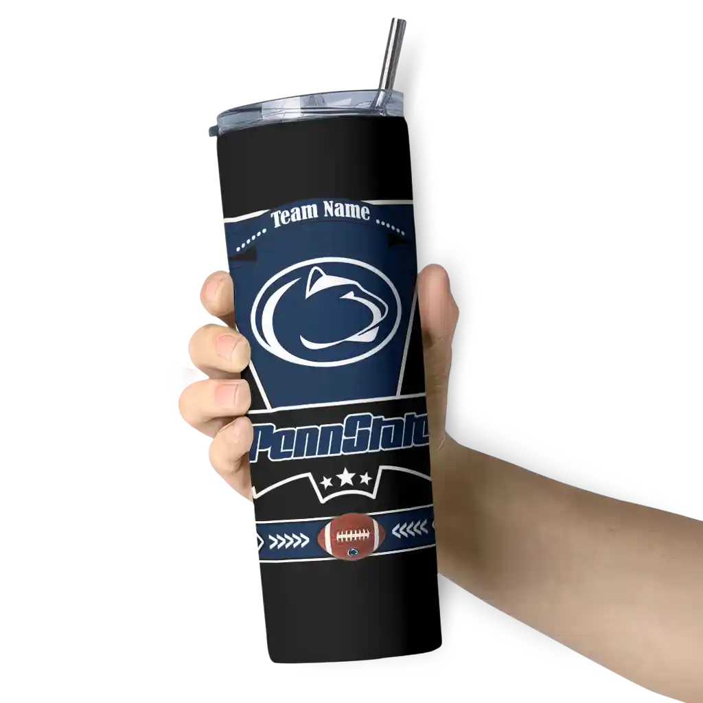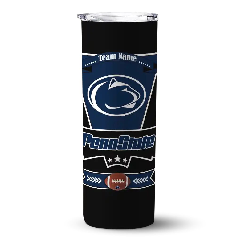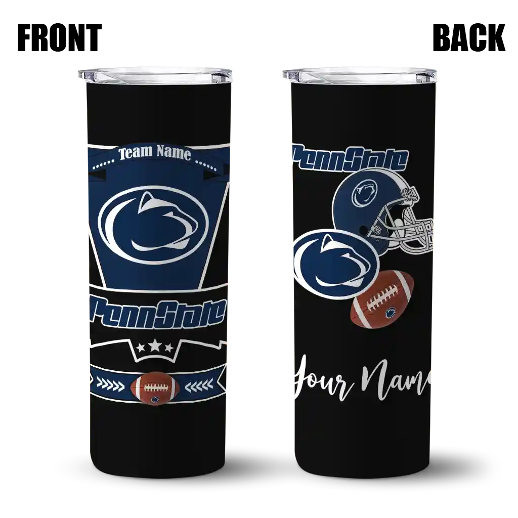 The Personalized Penn State Nittany Lions Helmet Belt Blue Black Skinny Tumbler tumbler is the perfect way to stay refreshed while showing off your pride for Penn State Nittany Lions. With its double-wall insulation, your drinks stay at the right temperature for hours, whether you're enjoying a hot coffee or keeping your iced drink cold. What's inside? You’ll find 1 stainless steel tumbler, 1 clear lid, and 1 removable straw. It's the perfect blend of function and fan spirit! Ergonomically designed for comfort, made from durable stainless steel, and insulated to maintain your drink’s temperature, this tumbler is a must-have for any dedicated NCAA fan.