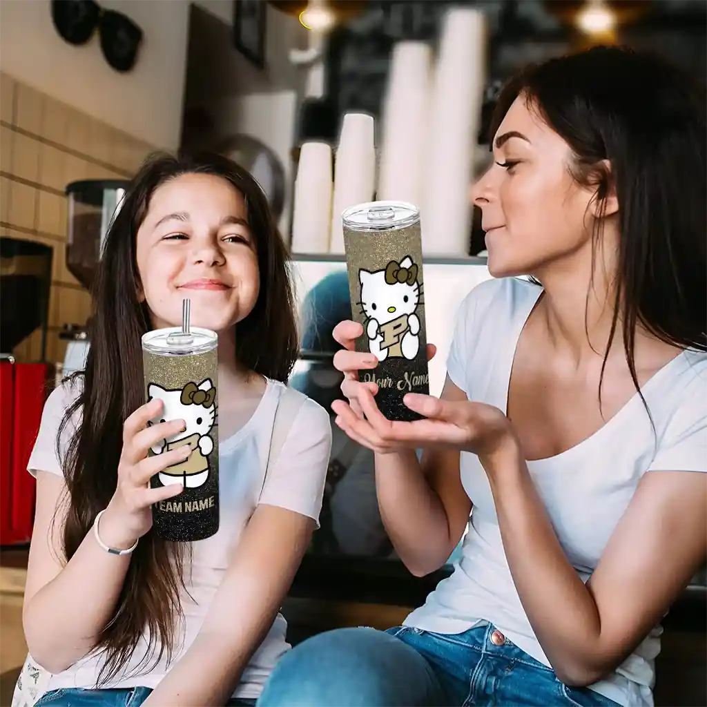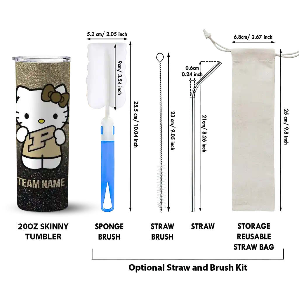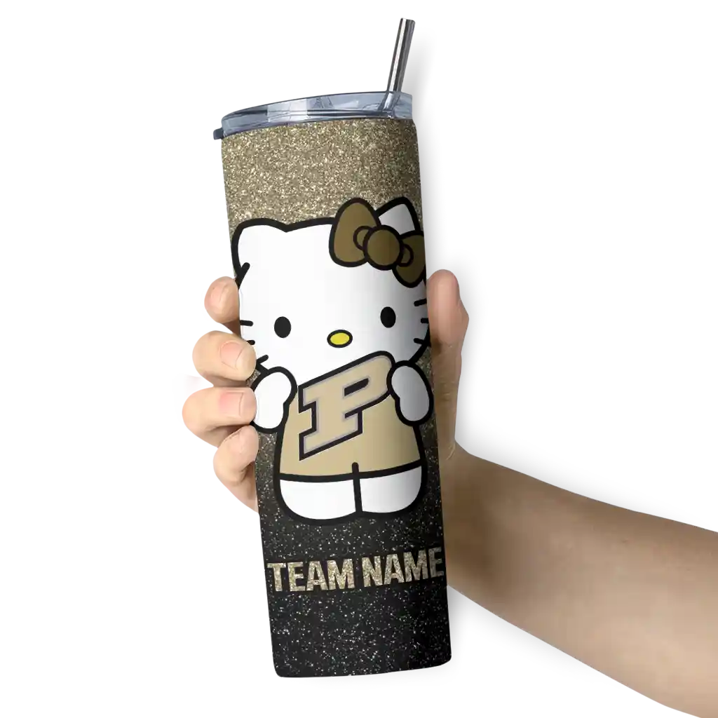 The Personalized Purdue Boilermakers Hello Kitty Gold Black Skinny Tumbler tumbler is the perfect way to stay refreshed while showing off your pride for Purdue Boilermakers. With its double-wall insulation, your drinks stay at the right temperature for hours, whether you're enjoying a hot coffee or keeping your iced drink cold. What's inside? You’ll find 1 stainless steel tumbler, 1 clear lid, and 1 removable straw. It's the perfect blend of function and fan spirit! Ergonomically designed for comfort, made from durable stainless steel, and insulated to maintain your drink’s temperature, this tumbler is a must-have for any dedicated NCAA fan.