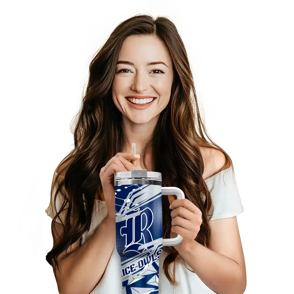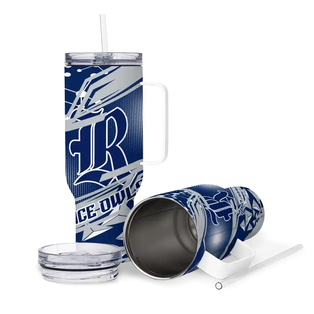 Rice Owls Curved Tumbler – Personalized Abstract Paths Navy Blue