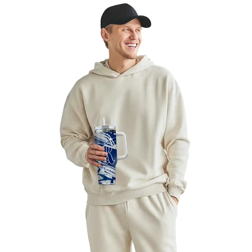 The Rice Owls Curved Tumbler – Custom Honey Streaks Navy Blue is a double-wall insulated stainless steel tumbler designed to maintain your beverage’s ideal temperature. It features an ergonomic curved design for an easy grip and a tough stainless steel build. The item includes the tumbler, a clear lid, and a removable straw. It is easy to clean and low-maintenance. You can personalize this tumbler by adding both a custom name and number of your choice during the ordering process.