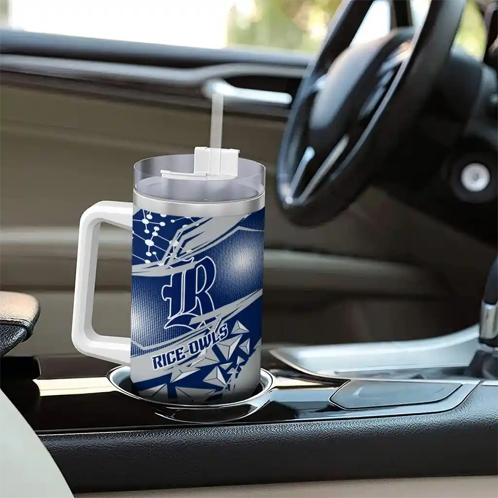The Customized Rice Owls Star Cluster Navy Blue Skinny Tumbler tumbler is the perfect way to stay refreshed while showing off your pride for Rice Owls. With its double-wall insulation, your drinks stay at the right temperature for hours, whether you're enjoying a hot coffee or keeping your iced drink cold. What's inside? You’ll find 1 stainless steel tumbler, 1 clear lid, and 1 removable straw. It's the perfect blend of function and fan spirit! Ergonomically designed for comfort, made from durable stainless steel, and insulated to maintain your drink’s temperature, this tumbler is a must-have for any dedicated NCAA fan.
