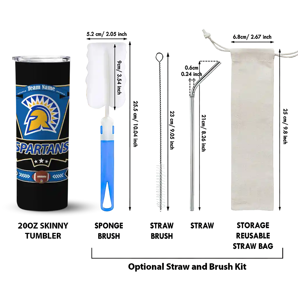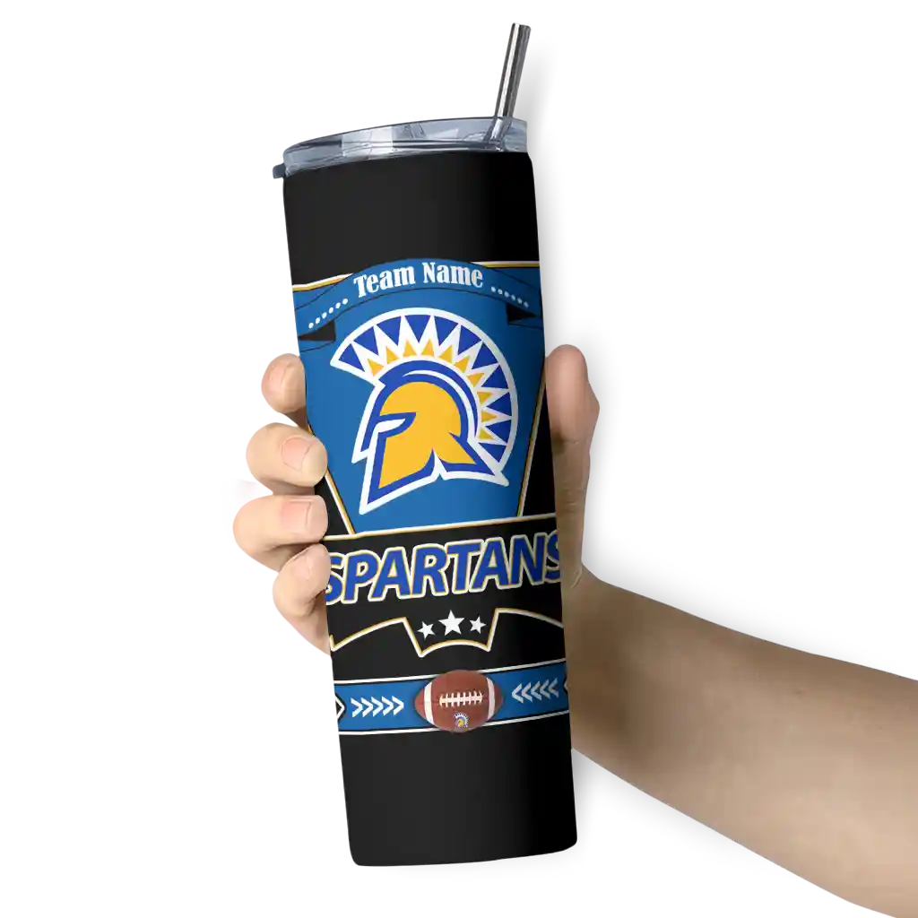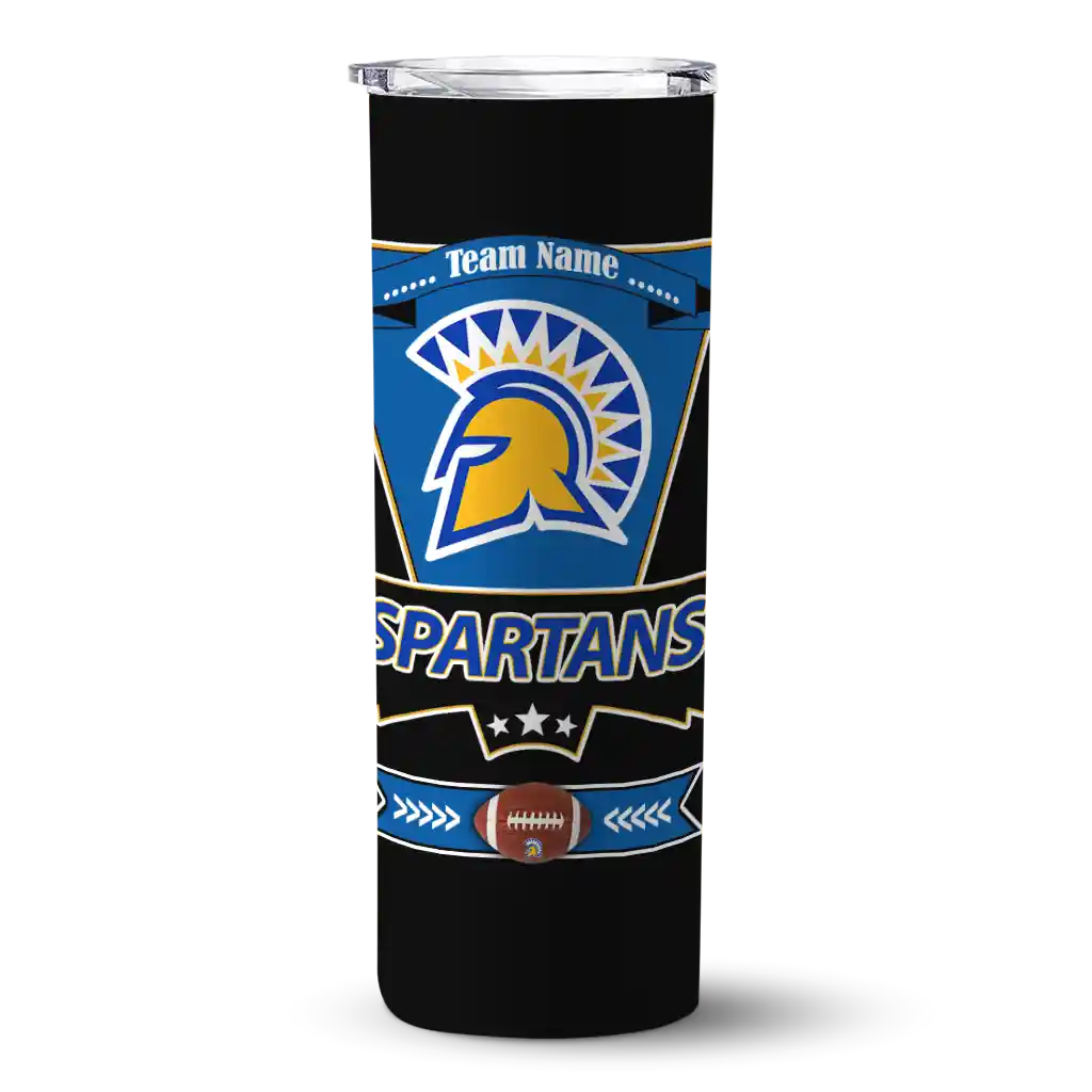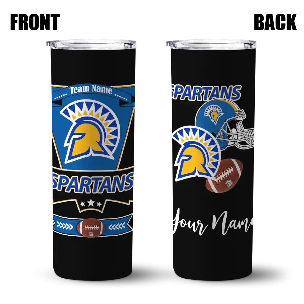 The Personalized San Jose State Spartans Helmet Belt Blue Black Skinny Tumbler tumbler is the perfect way to stay refreshed while showing off your pride for San Jose State Spartans. With its double-wall insulation, your drinks stay at the right temperature for hours, whether you're enjoying a hot coffee or keeping your iced drink cold. What's inside? You’ll find 1 stainless steel tumbler, 1 clear lid, and 1 removable straw. It's the perfect blend of function and fan spirit! Ergonomically designed for comfort, made from durable stainless steel, and insulated to maintain your drink’s temperature, this tumbler is a must-have for any dedicated NCAA fan.