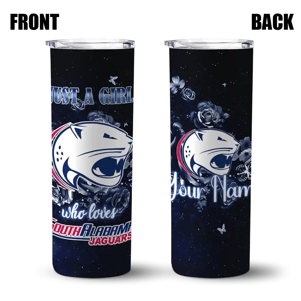Personalized South Alabama Jaguars Rose Romance Blue Black Skinny Tumbler