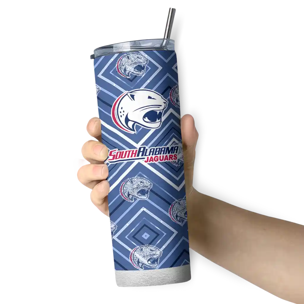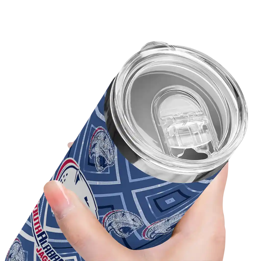 Introducing the South Alabama Jaguars Tumblers from NCAA Fan Pro —where fan pride meets practical design. This slim tumbler is created for NCAA fans who want their drinks at the perfect temperature while displaying their school pride. The double-wall insulation ensures your hot beverages stay warm and your cold drinks stay chilled for hours, so you can enjoy your drinks at their best, whether you're at a game, tailgate, or on the go.
