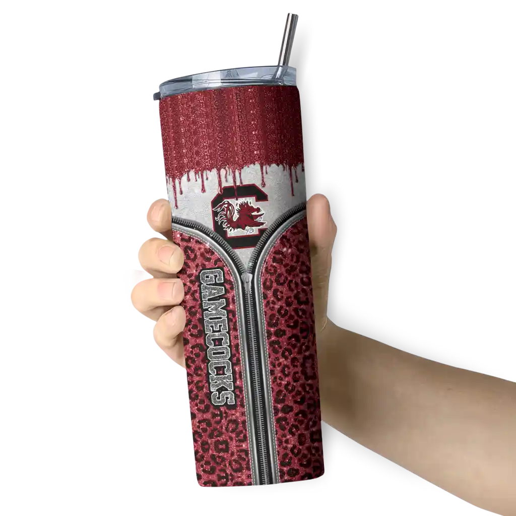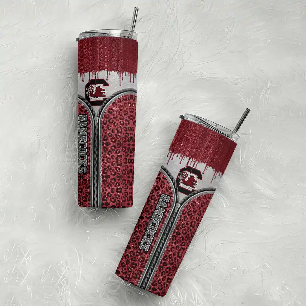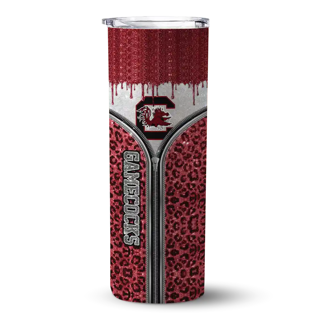 No question about it—the Personalized South Carolina Gamecocks Leopard Zipper Garnet Curved Tumbler is the ultimate way to stay refreshed while rocking your South Carolina Gamecocks pride. From the stadium to your tailgate, or just chilling at home, this sleek tumbler makes sure you stay hydrated in style. What’s in the box? A stainless steel tumbler, clear lid, and removable straw—all the essentials for keeping your favorite drinks on point!