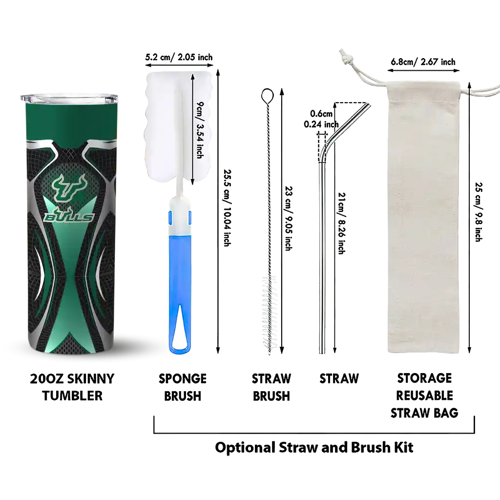 No question about it—the Custom South Florida Bulls Chevron Stripe Green Curved Tumbler is the ultimate way to stay refreshed while rocking your South Florida Bulls pride. From the stadium to your tailgate, or just chilling at home, this sleek tumbler makes sure you stay hydrated in style. What’s in the box? A stainless steel tumbler, clear lid, and removable straw—all the essentials for keeping your favorite drinks on point!