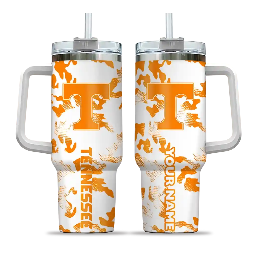 No question about it—the Personalized Tennessee Volunteers Camo Mashup Orange White Curved Tumbler is the ultimate way to stay refreshed while rocking your Tennessee Volunteers pride. From the stadium to your tailgate, or just chilling at home, this sleek tumbler makes sure you stay hydrated in style. What’s in the box? A stainless steel tumbler, clear lid, and removable straw—all the essentials for keeping your favorite drinks on point!