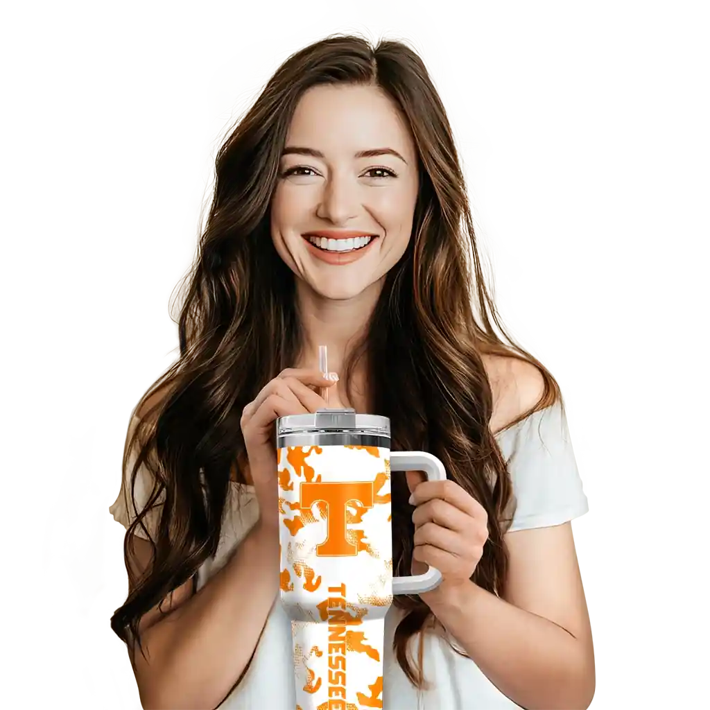 Tennessee Volunteers Tumber – Personalized Camo Mashup Curved Orange White