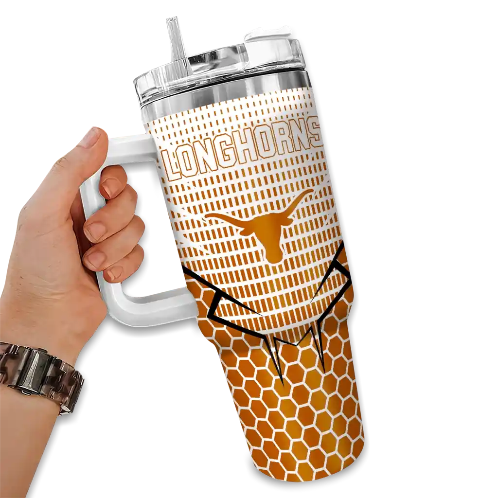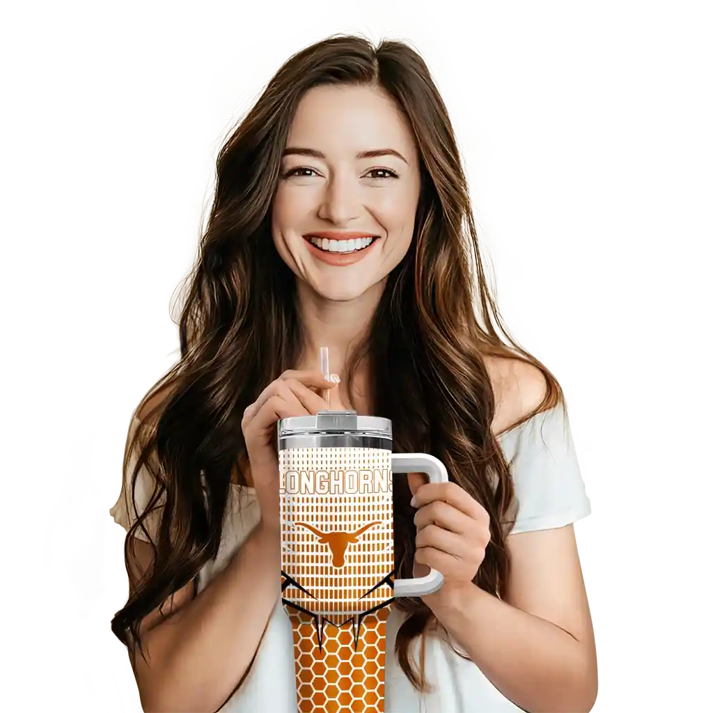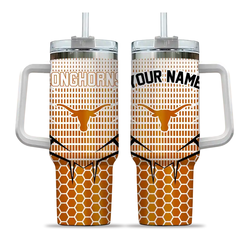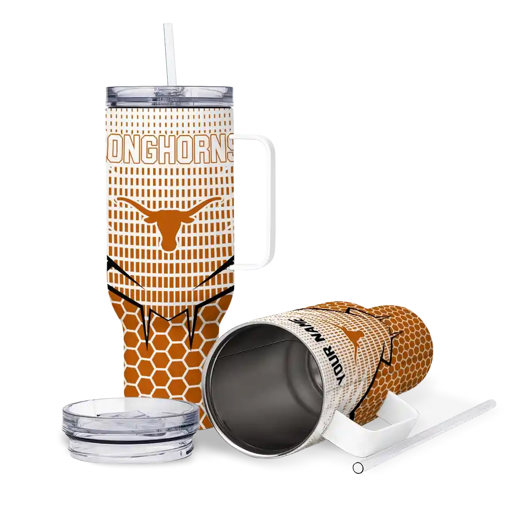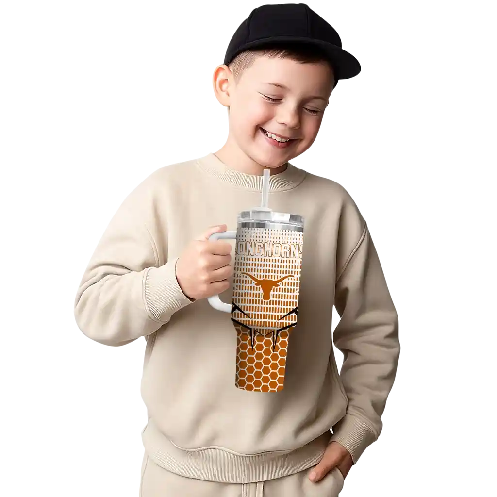 Texas Longhorns Curved Tumbler – Personalized Hex Texture Orange
