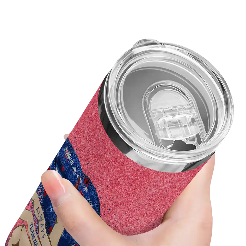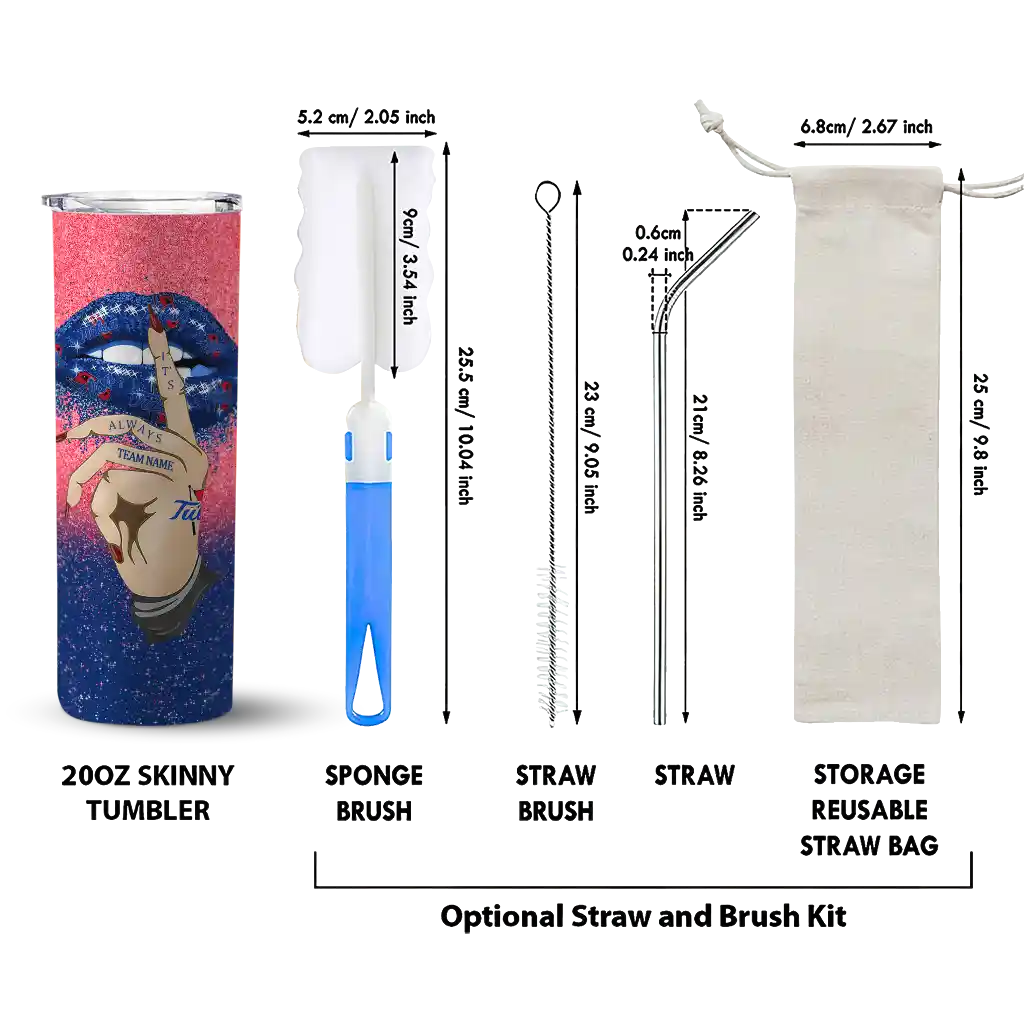 The Personalized Tulsa Golden Hurricane Sparkle Lips Blue Skinny Tumbler tumbler is the perfect way to stay refreshed while showing off your pride for Tulsa Golden Hurricane. With its double-wall insulation, your drinks stay at the right temperature for hours, whether you're enjoying a hot coffee or keeping your iced drink cold. What's inside? You’ll find 1 stainless steel tumbler, 1 clear lid, and 1 removable straw. It's the perfect blend of function and fan spirit! Ergonomically designed for comfort, made from durable stainless steel, and insulated to maintain your drink’s temperature, this tumbler is a must-have for any dedicated NCAA fan.