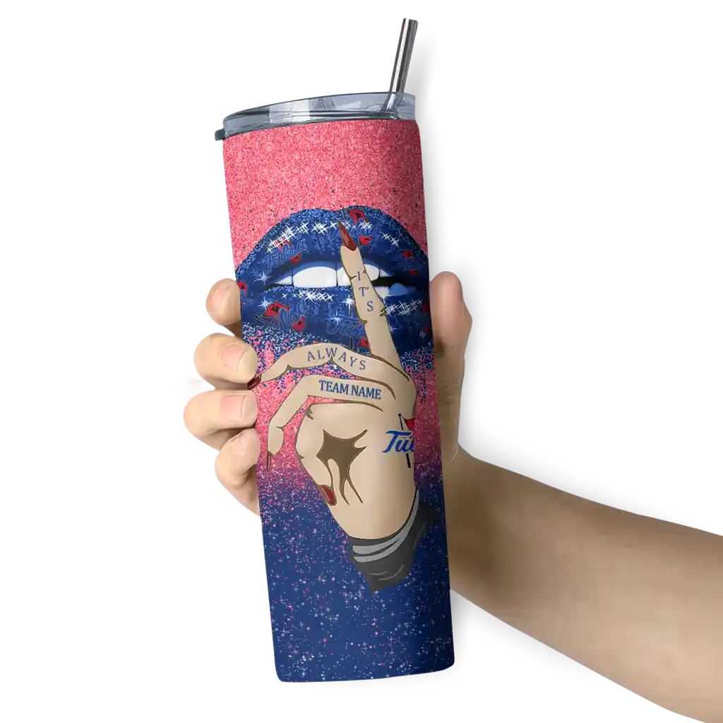 Personalized Tulsa Golden Hurricane Sparkle Lips Blue Skinny Tumbler