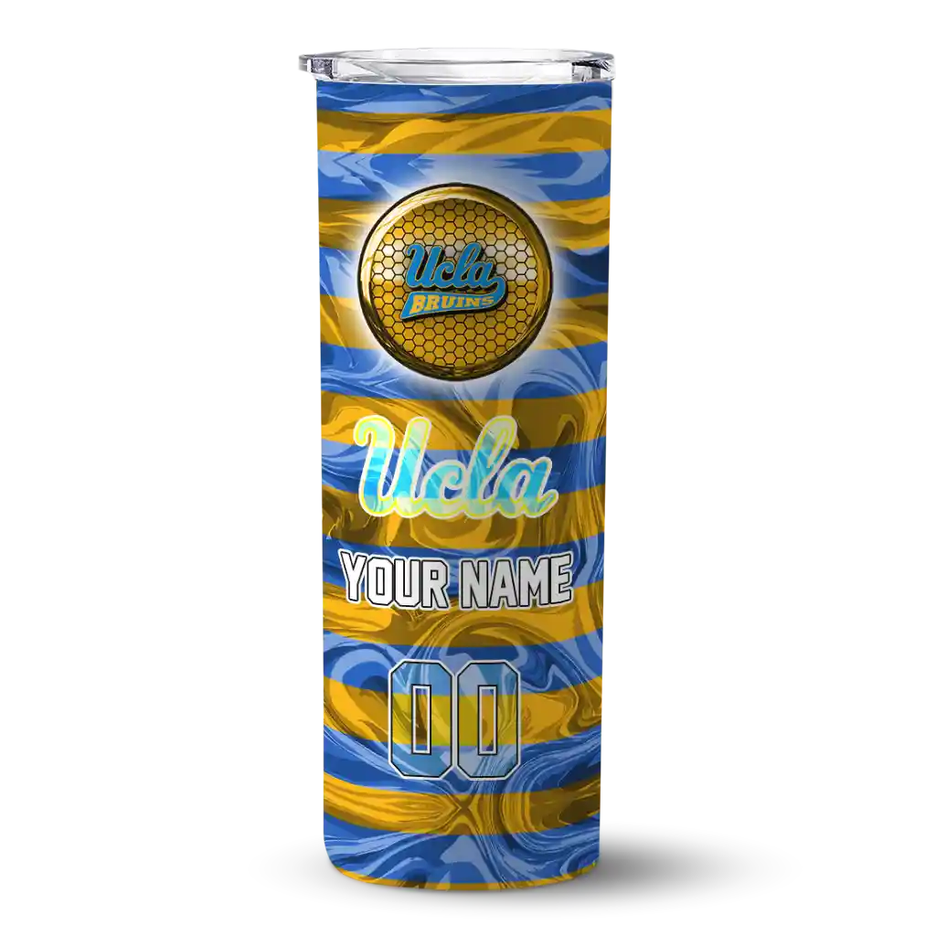 The Personalized UCLA Bruins Patterned Waves Blue Skinny Tumbler tumbler is the perfect way to stay refreshed while showing off your pride for UCLA Bruins. With its double-wall insulation, your drinks stay at the right temperature for hours, whether you're enjoying a hot coffee or keeping your iced drink cold. What's inside? You’ll find 1 stainless steel tumbler, 1 clear lid, and 1 removable straw. It's the perfect blend of function and fan spirit! Ergonomically designed for comfort, made from durable stainless steel, and insulated to maintain your drink’s temperature, this tumbler is a must-have for any dedicated NCAA fan.