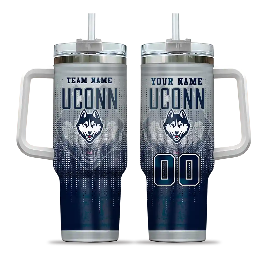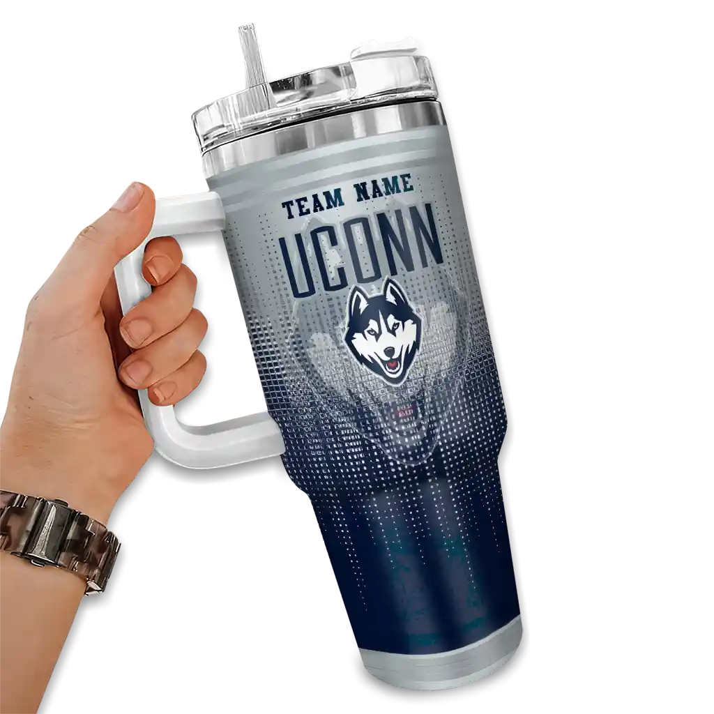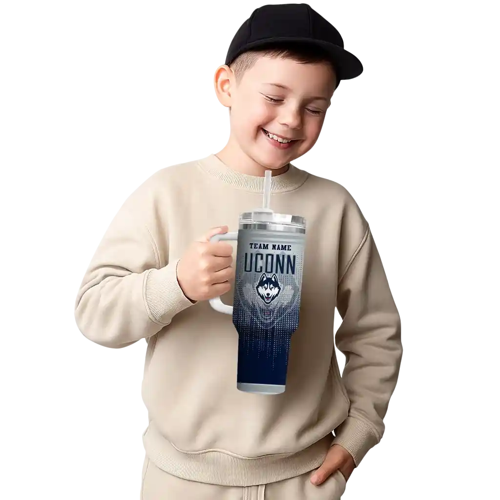 UConn Huskies Curved Tumbler – Personalized Gradient Dots Blue