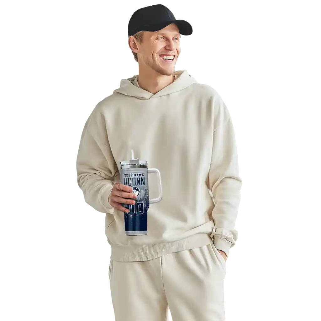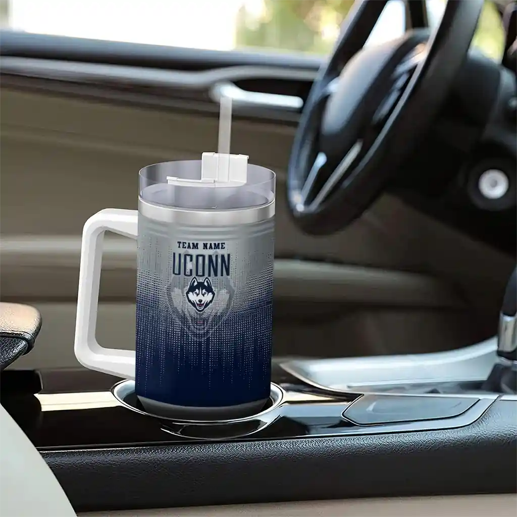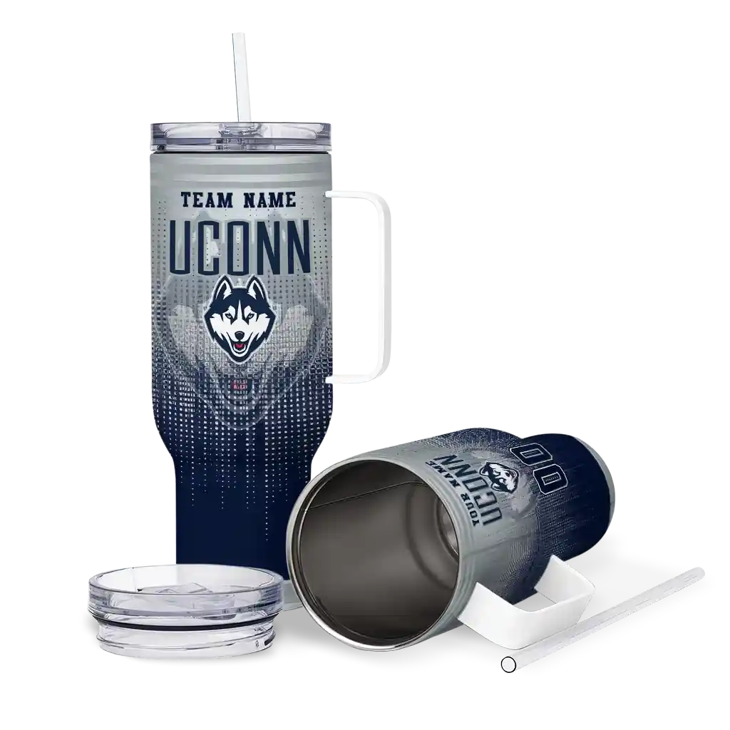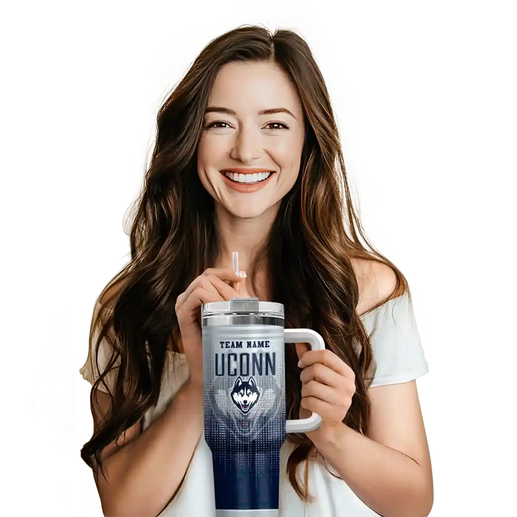 UConn Huskies Curved Tumbler – Personalized Gradient Dots Blue