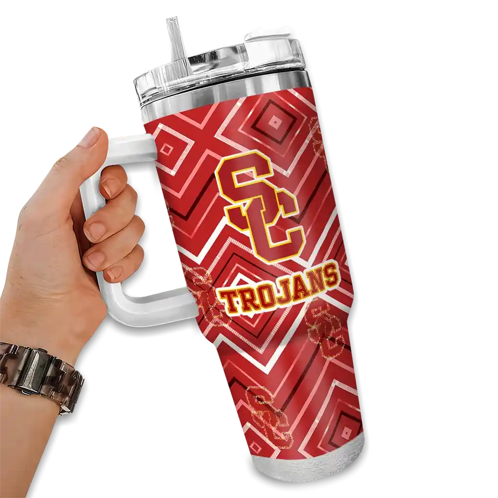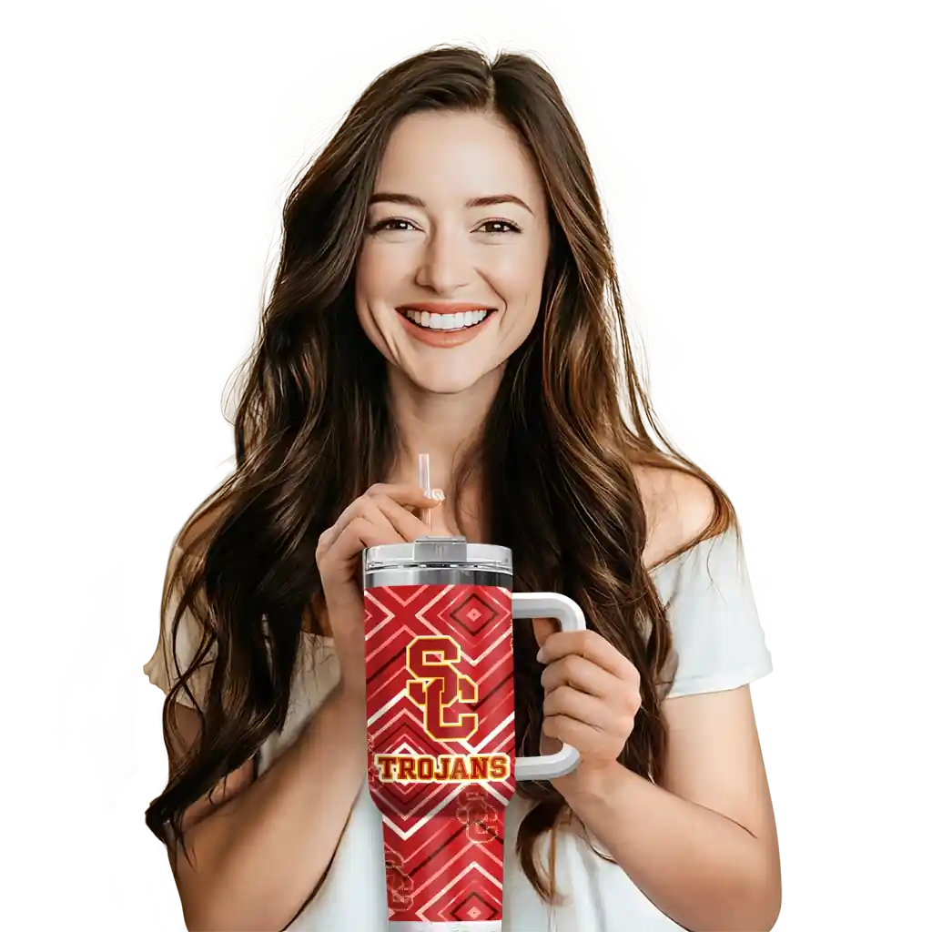 USC Trojans Curved Tumbler – Personalized Bold Diamonds Red