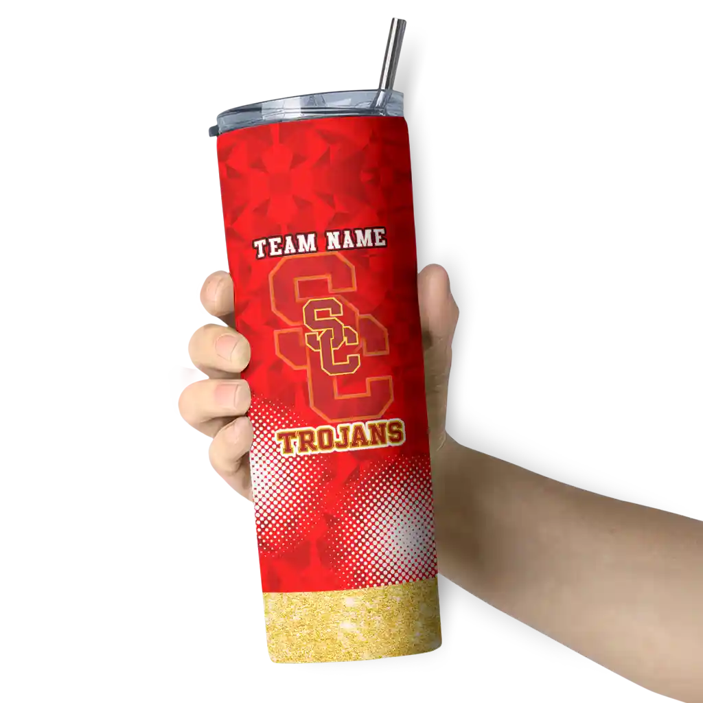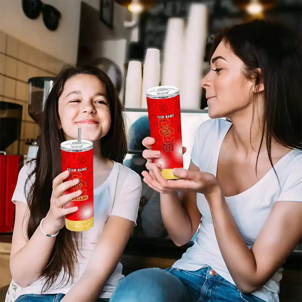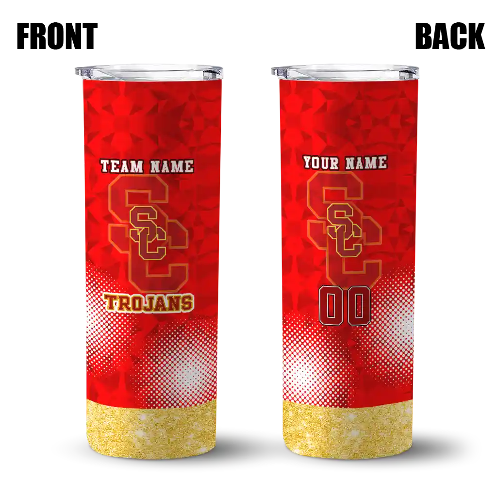 The Customized USC Trojans Swirl Texture Red Skinny Tumbler tumbler is the perfect way to stay refreshed while showing off your pride for USC Trojans. With its double-wall insulation, your drinks stay at the right temperature for hours, whether you're enjoying a hot coffee or keeping your iced drink cold. What's inside? You’ll find 1 stainless steel tumbler, 1 clear lid, and 1 removable straw. It's the perfect blend of function and fan spirit! Ergonomically designed for comfort, made from durable stainless steel, and insulated to maintain your drink’s temperature, this tumbler is a must-have for any dedicated NCAA fan.