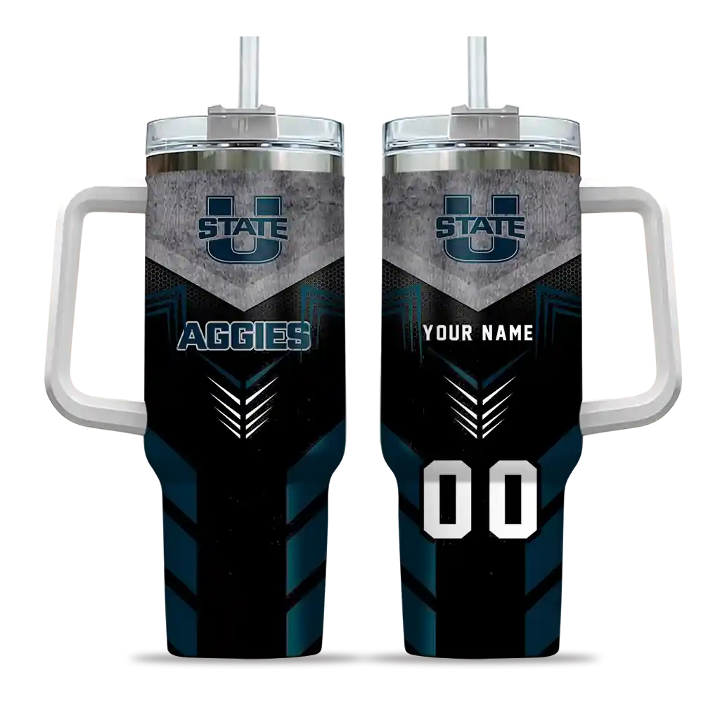 Utah State Aggies Curved Tumbler – Personalized Arrow Armor Navy Black