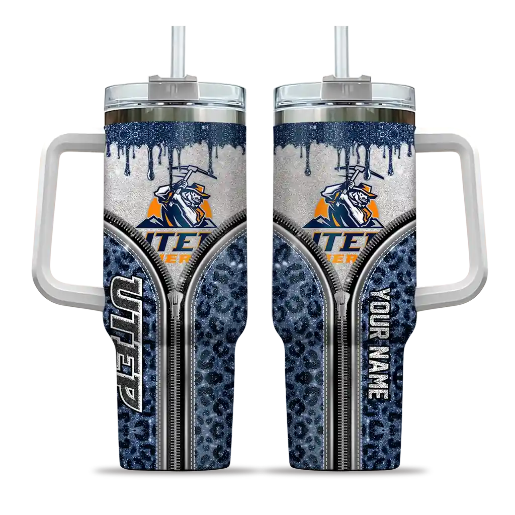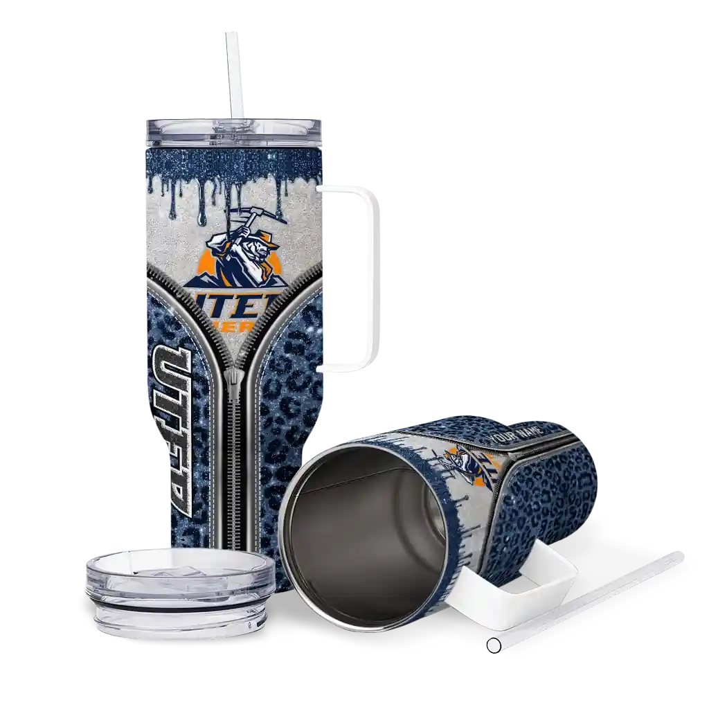 UTEP Miners Tumber – Personalized Leopard Zipper Curved Blue
