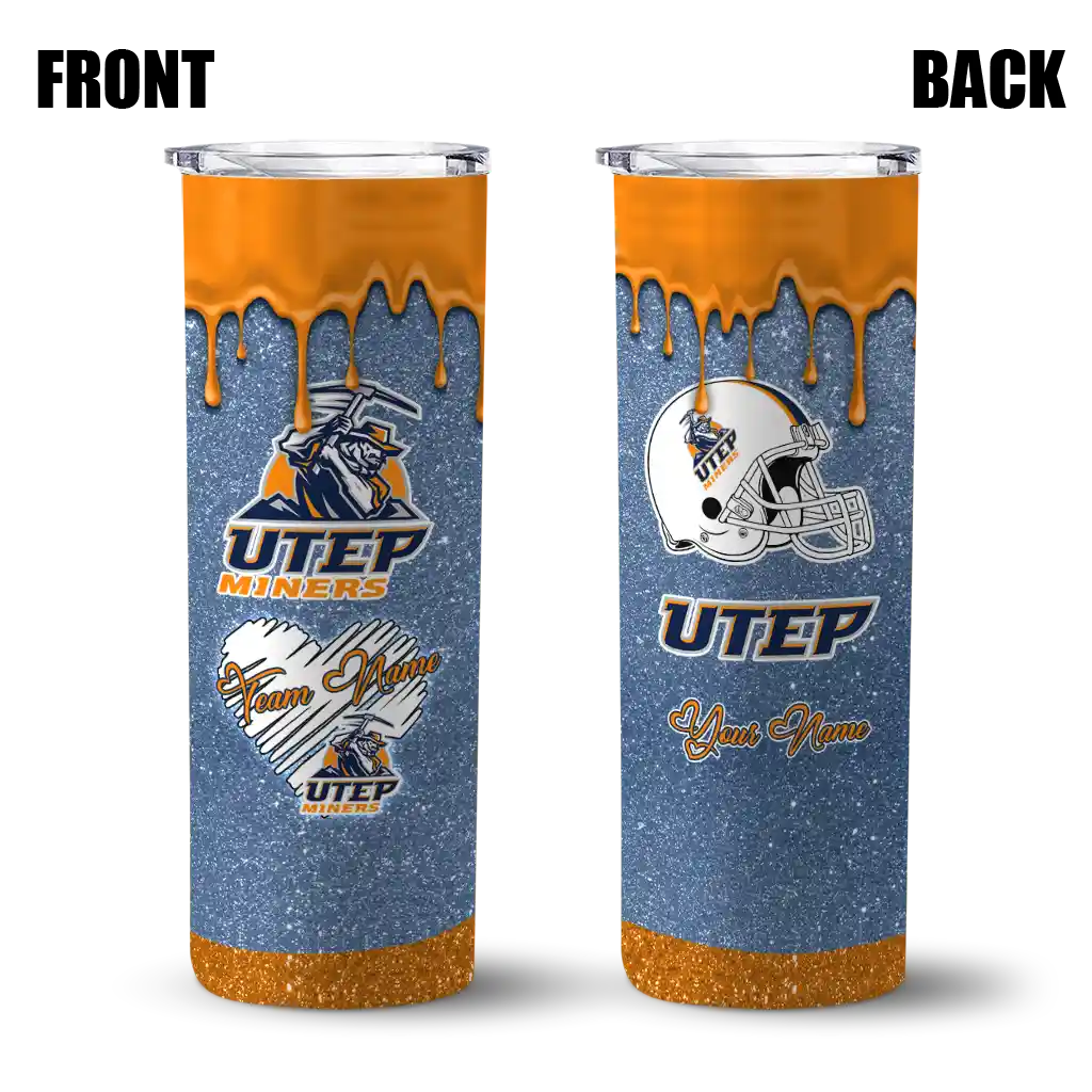 The Custom UTEP Miners Camo Texture Blue Skinny Tumbler tumbler is the perfect way to stay refreshed while showing off your pride for UTEP Miners. With its double-wall insulation, your drinks stay at the right temperature for hours, whether you're enjoying a hot coffee or keeping your iced drink cold. What's inside? You’ll find 1 stainless steel tumbler, 1 clear lid, and 1 removable straw. It's the perfect blend of function and fan spirit! Ergonomically designed for comfort, made from durable stainless steel, and insulated to maintain your drink’s temperature, this tumbler is a must-have for any dedicated NCAA fan.