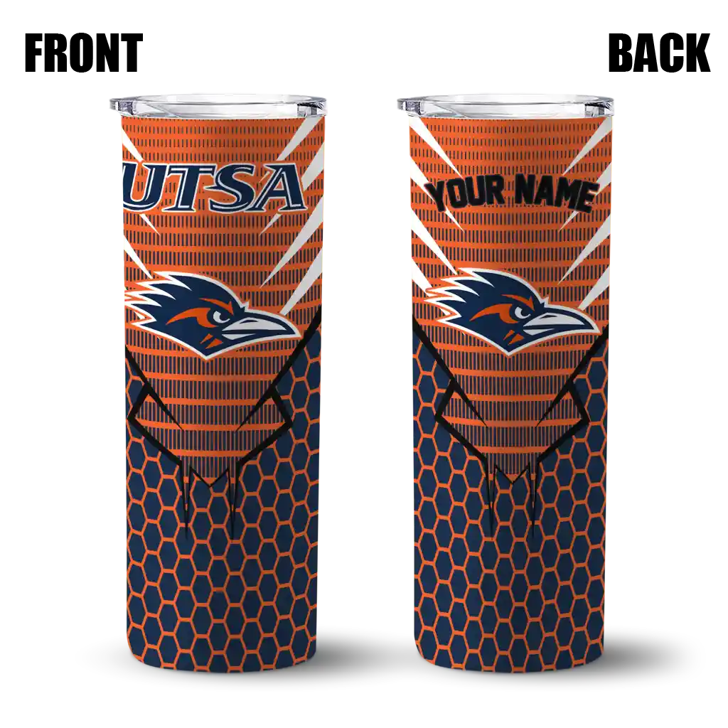 No question about it—the Personalized UTSA Roadrunners Hexagon Armor Orange Curved Tumbler is the ultimate way to stay refreshed while rocking your UTSA Roadrunners pride. From the stadium to your tailgate, or just chilling at home, this sleek tumbler makes sure you stay hydrated in style. What’s in the box? A stainless steel tumbler, clear lid, and removable straw—all the essentials for keeping your favorite drinks on point!
