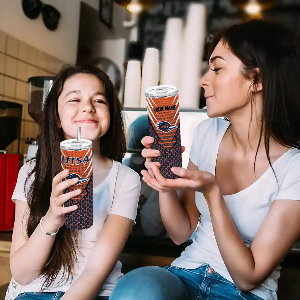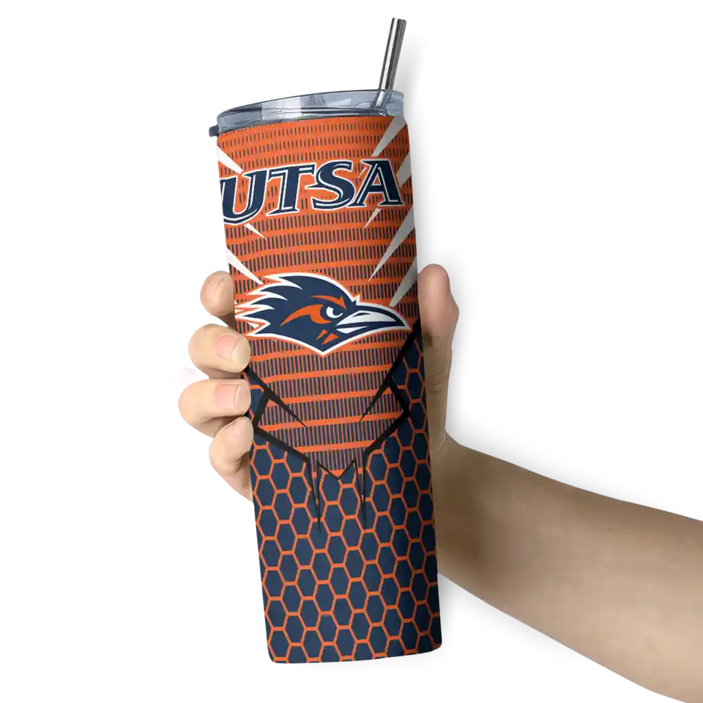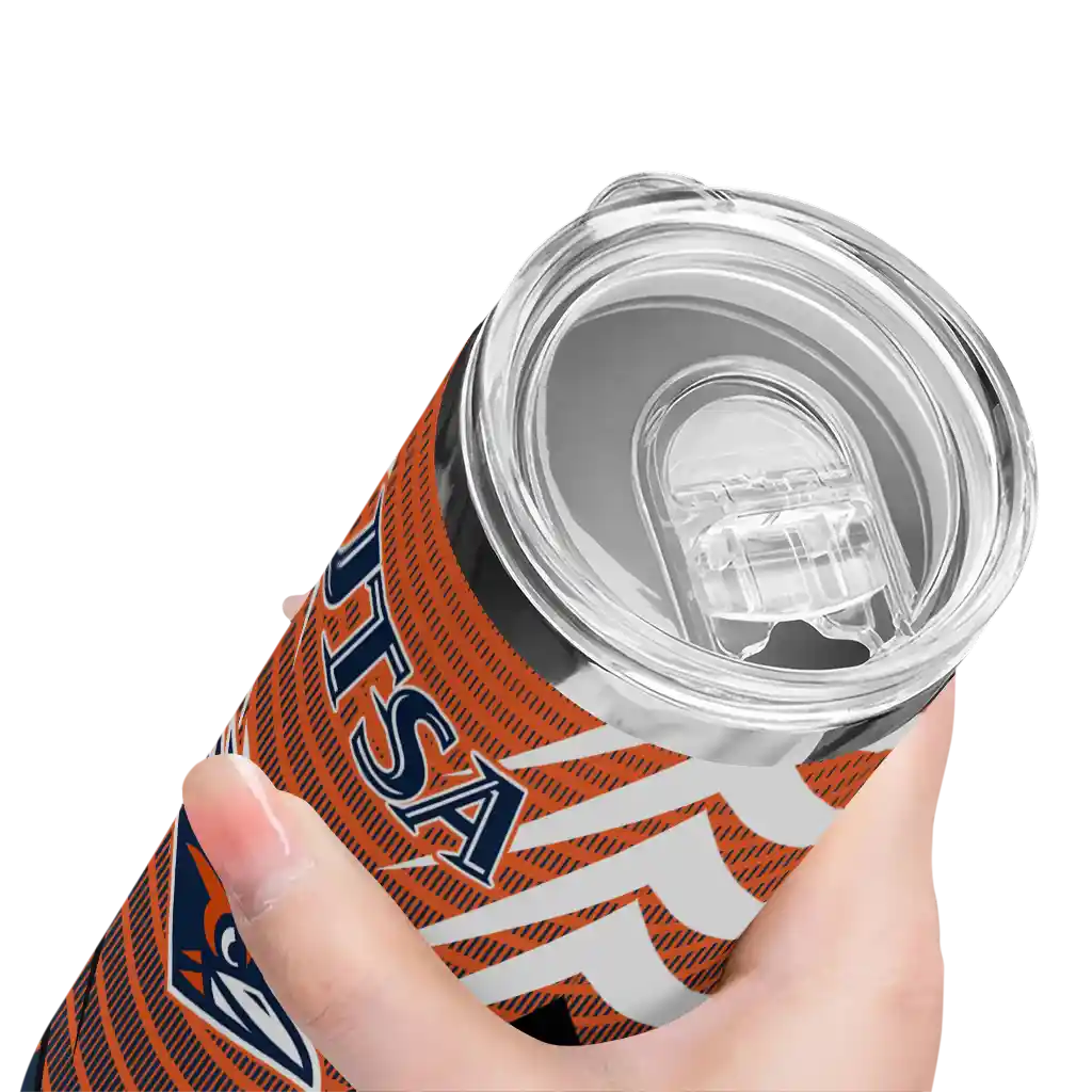 Introducing the UTSA Roadrunners Tumblers from NCAA Fan Pro —where fan pride meets practical design. This slim tumbler is created for NCAA fans who want their drinks at the perfect temperature while displaying their school pride. The double-wall insulation ensures your hot beverages stay warm and your cold drinks stay chilled for hours, so you can enjoy your drinks at their best, whether you're at a game, tailgate, or on the go.