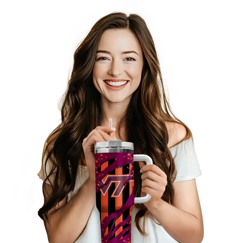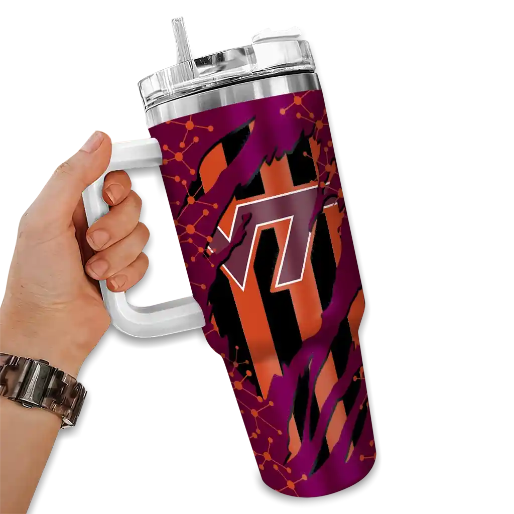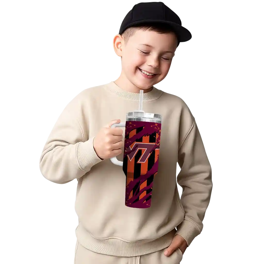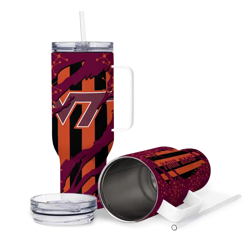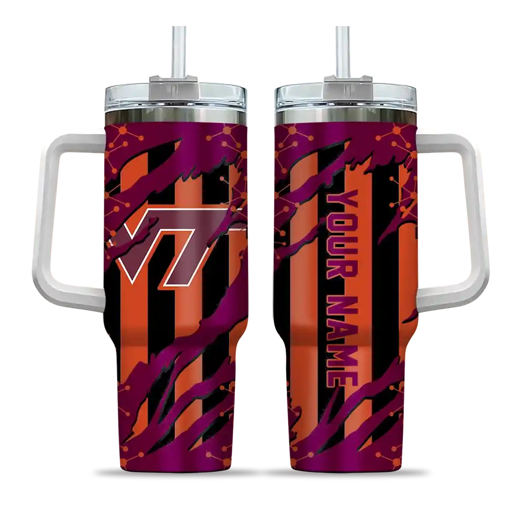 Virginia Tech Hokies Curved Tumbler – Personalized Claw Cut Maroon Black