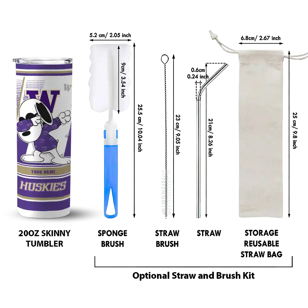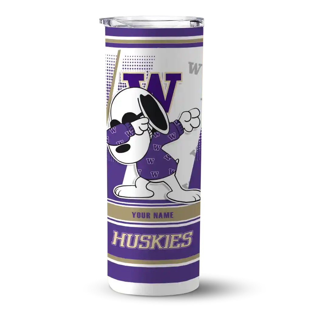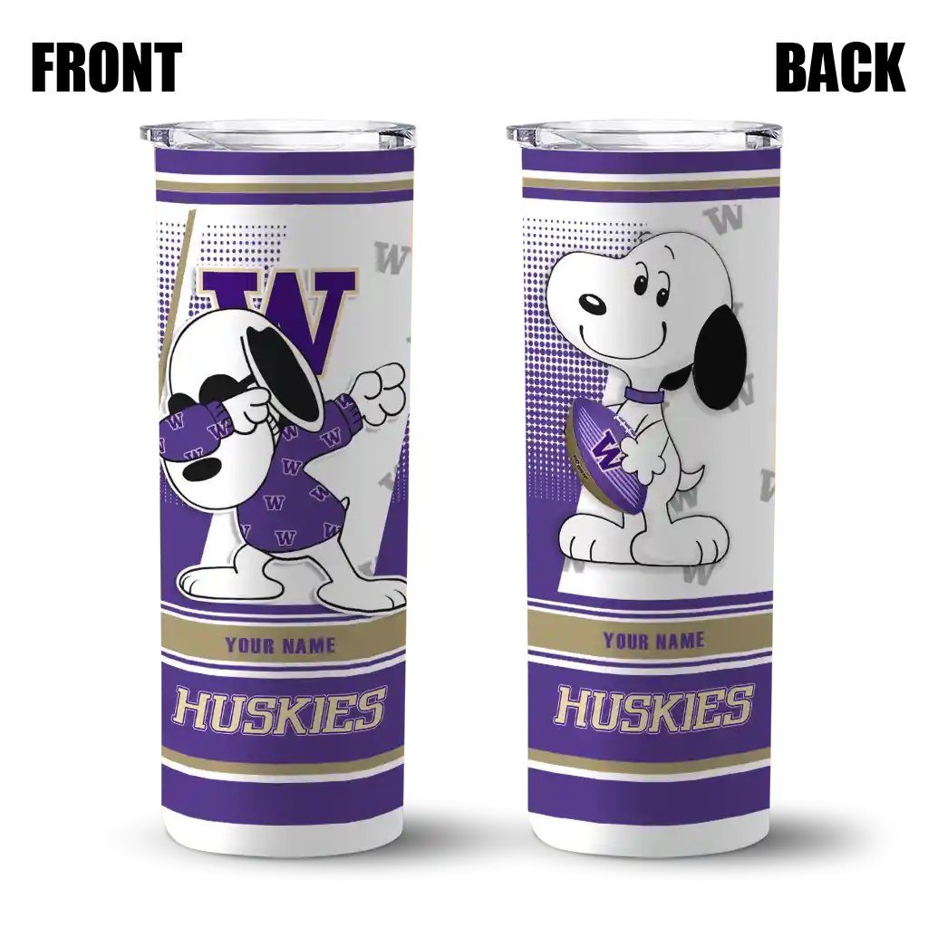 Personalized Washington Huskies Snoopy Dog Purple White Skinny Tumbler