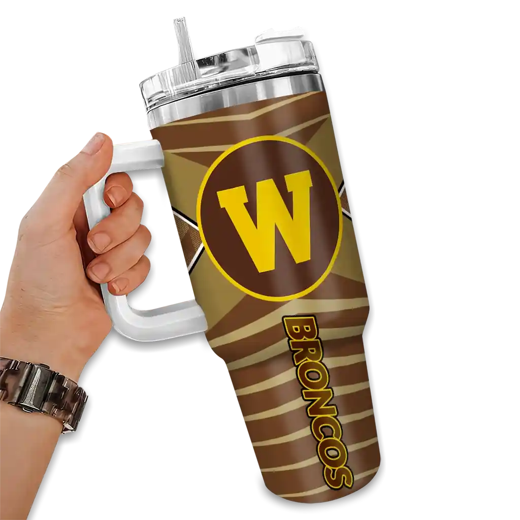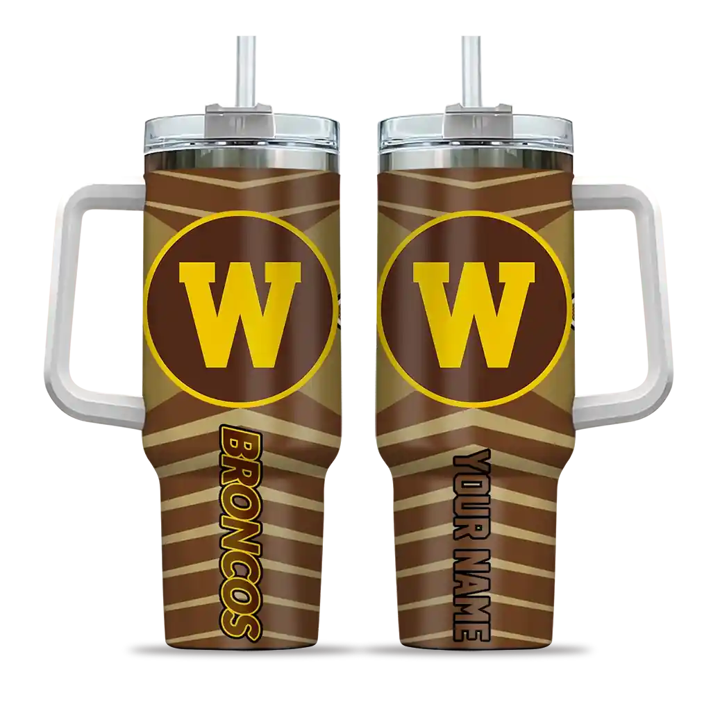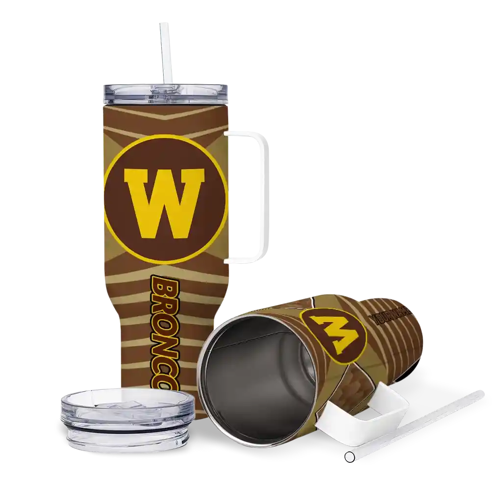 The Western Michigan Broncos Curved Tumbler – Personalized Chevron Layers Brown is a double-wall insulated stainless steel tumbler designed to maintain your beverage’s ideal temperature. It features an ergonomic curved design for an easy grip and a tough stainless steel build. The item includes the tumbler, a clear lid, and a removable straw. It is easy to clean and low-maintenance. You can personalize this tumbler by adding both a custom name and number of your choice during the ordering process.