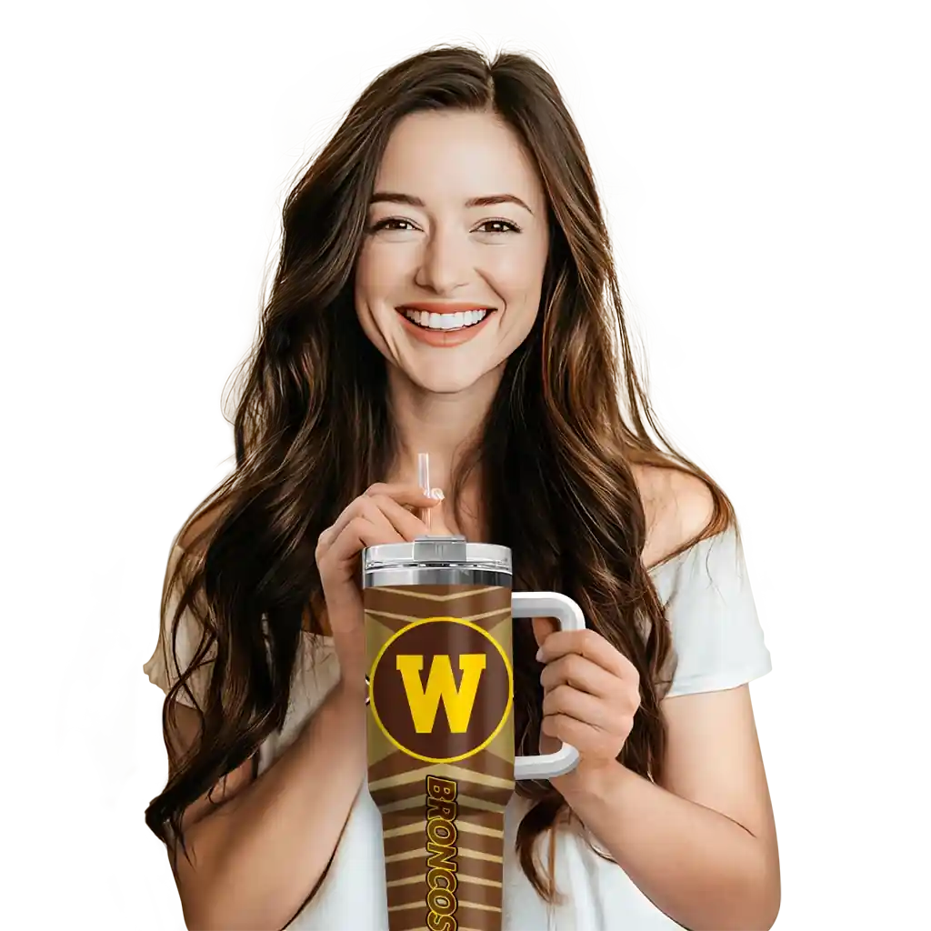 Western Michigan Broncos Curved Tumbler – Personalized Chevron Layers Brown
