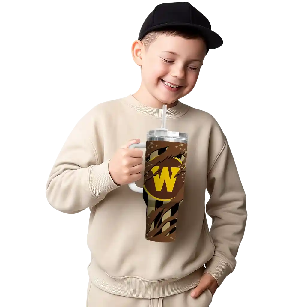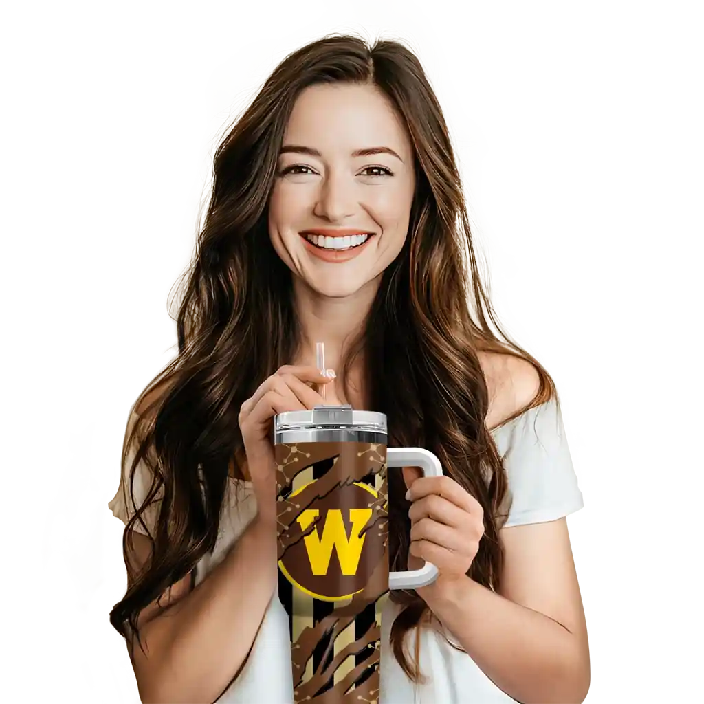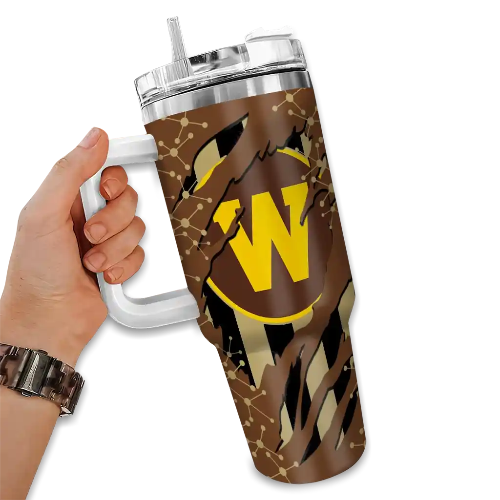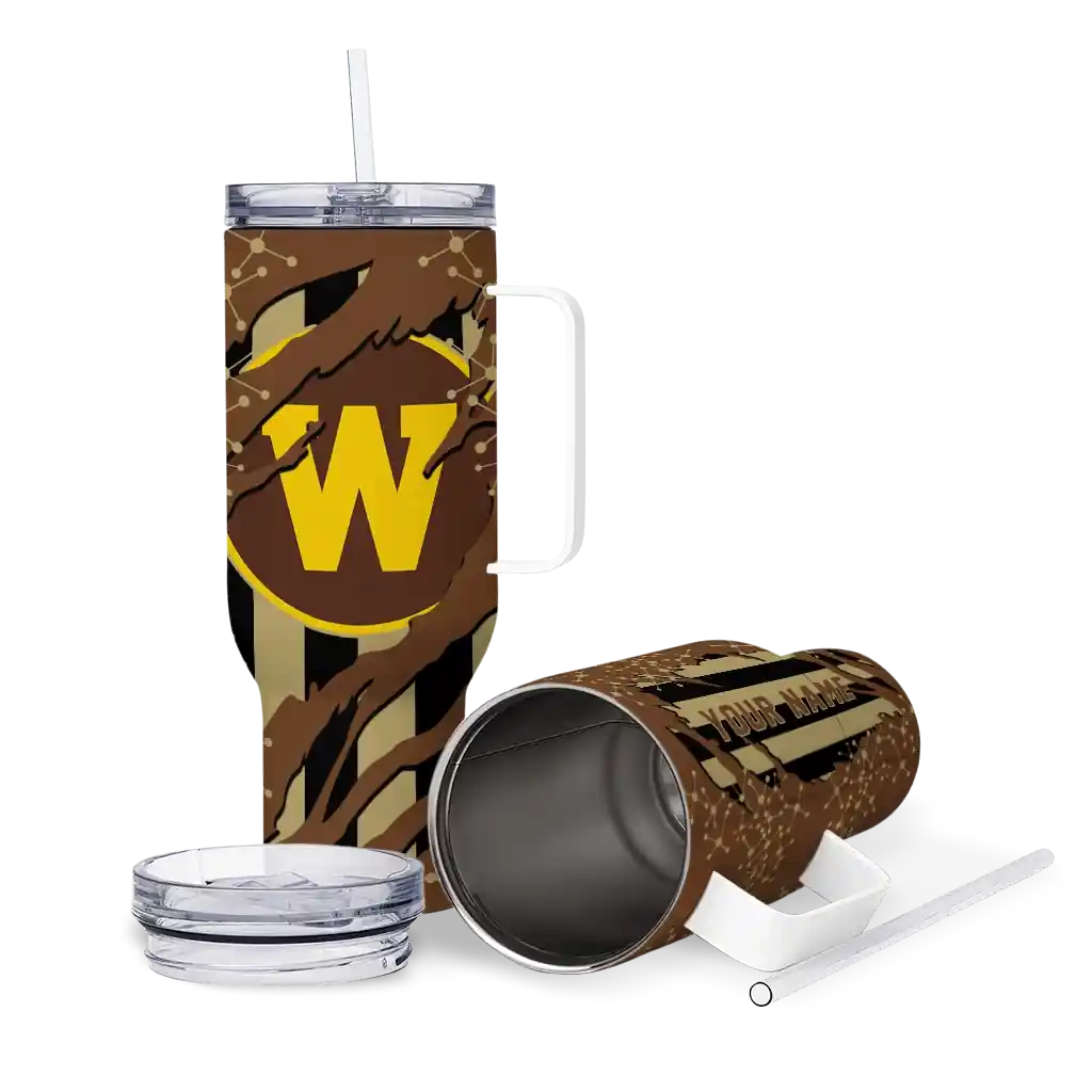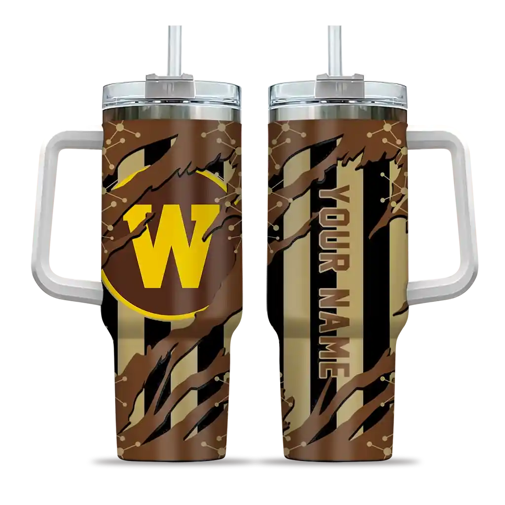 Western Michigan Broncos Curved Tumbler – Personalized Claw Cut Brown Black