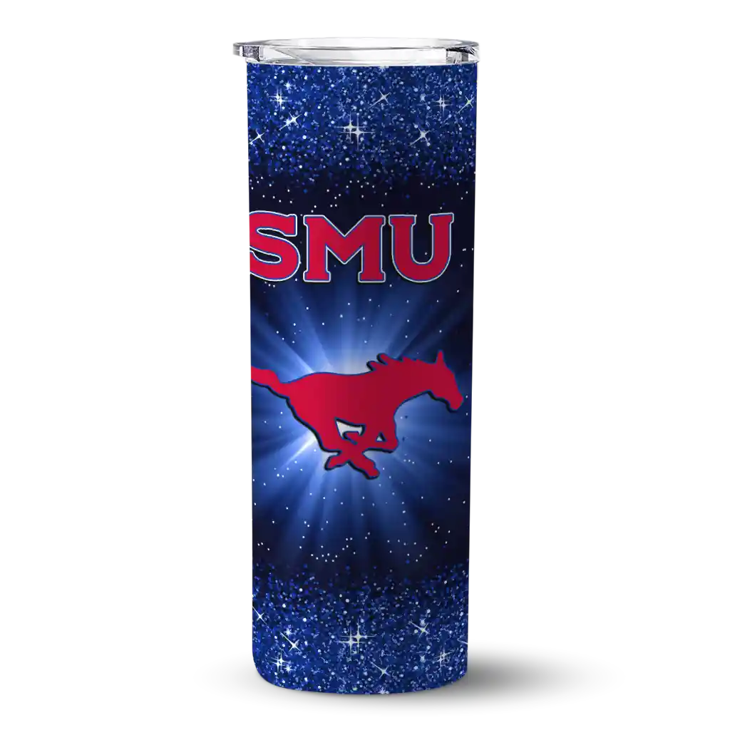 SMU Mustangs Radiant Glitter Blue Skinny Tumbler