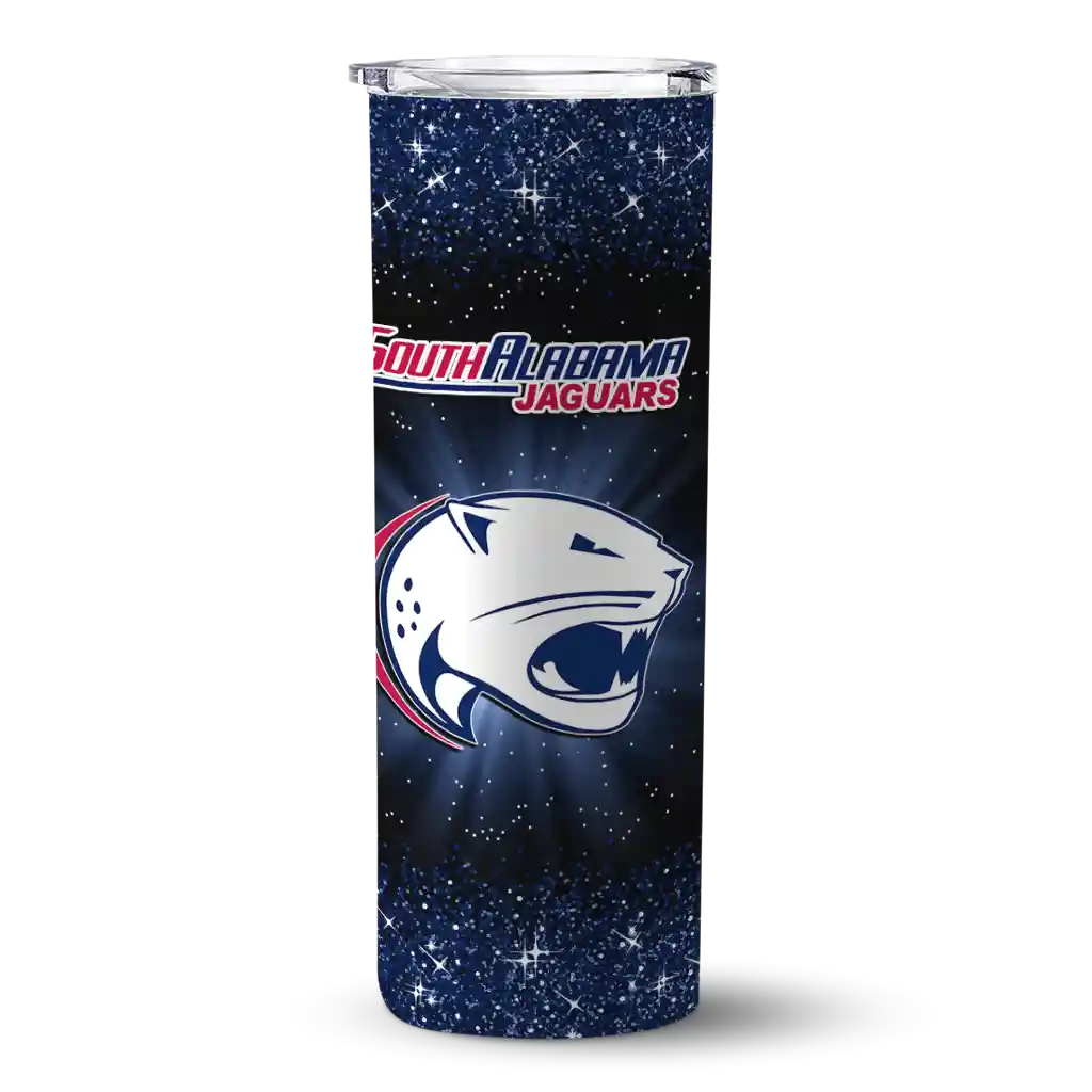 South Alabama Jaguars Radiant Glitter Blue Skinny Tumbler