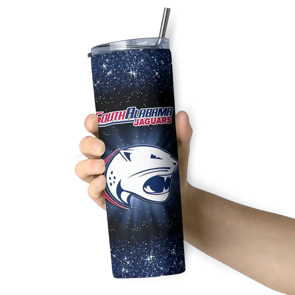 The South Alabama Jaguars Radiant Glitter Blue Skinny Tumbler tumbler is the perfect way to stay refreshed while showing off your pride for South Alabama Jaguars. With its double-wall insulation, your drinks stay at the right temperature for hours, whether you're enjoying a hot coffee or keeping your iced drink cold. What's inside? You’ll find 1 stainless steel tumbler, 1 clear lid, and 1 removable straw. It's the perfect blend of function and fan spirit! Ergonomically designed for comfort, made from durable stainless steel, and insulated to maintain your drink’s temperature, this tumbler is a must-have for any dedicated NCAA fan.