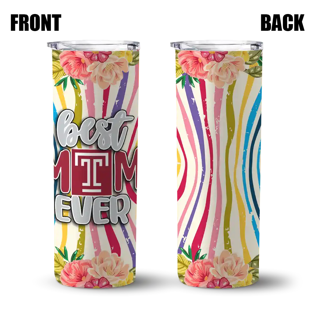 The Temple Owls Flower Cluster Skinny Tumbler tumbler is the perfect way to stay refreshed while showing off your pride for Temple Owls. With its double-wall insulation, your drinks stay at the right temperature for hours, whether you're enjoying a hot coffee or keeping your iced drink cold. What's inside? You’ll find 1 stainless steel tumbler, 1 clear lid, and 1 removable straw. It's the perfect blend of function and fan spirit! Ergonomically designed for comfort, made from durable stainless steel, and insulated to maintain your drink’s temperature, this tumbler is a must-have for any dedicated NCAA fan.