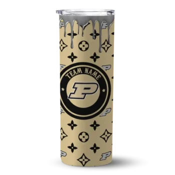 The Custom Purdue Boilermakers Camo Texture Gold Skinny Tumbler tumbler is the perfect way to stay refreshed while showing off your pride for Purdue Boilermakers. With its double-wall insulation, your drinks stay at the right temperature for hours, whether you're enjoying a hot coffee or keeping your iced drink cold. What's inside? You’ll find 1 stainless steel tumbler, 1 clear lid, and 1 removable straw. It's the perfect blend of function and fan spirit! Ergonomically designed for comfort, made from durable stainless steel, and insulated to maintain your drink’s temperature, this tumbler is a must-have for any dedicated NCAA fan.