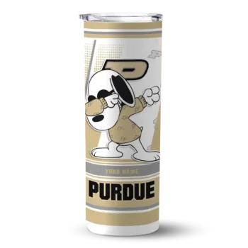 Customized Purdue Boilermakers Snoopy Dog Gold White Skinny Tumbler $28.99